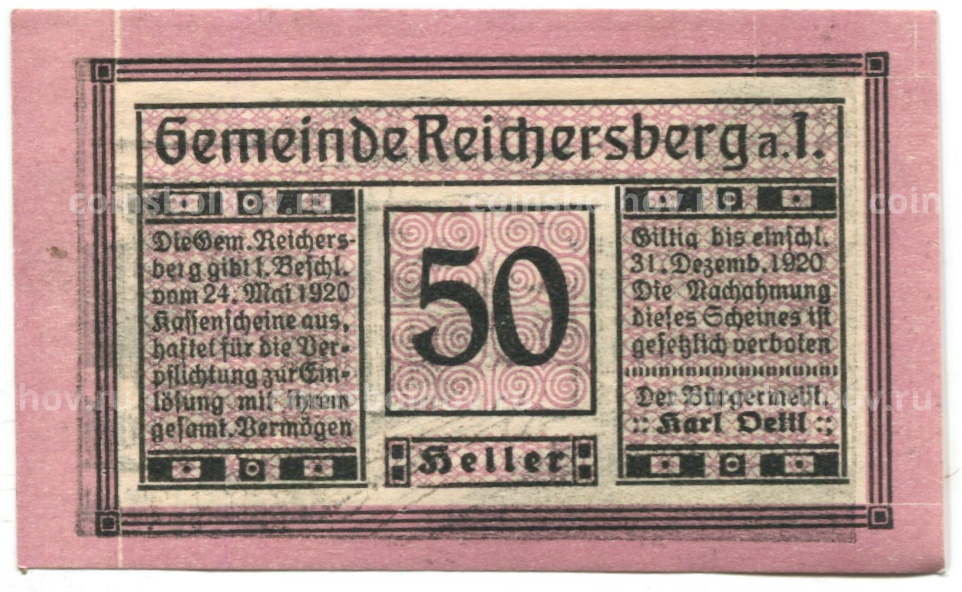 50 геллеров 1920 года Австрия — Рейхенберг (нотгельд)