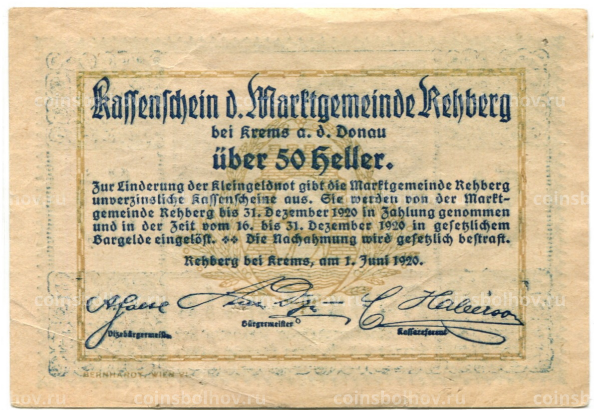 Банкнота 50 геллеров 1920 года Австрия — Реберг-бай-Кремс-ан-дер-Донау (нотгельд)