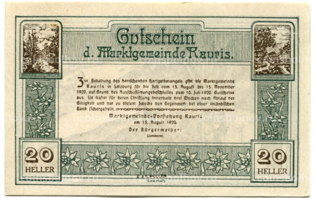 20 геллеров 1920 года Австрия — Рейс (нотгельд)