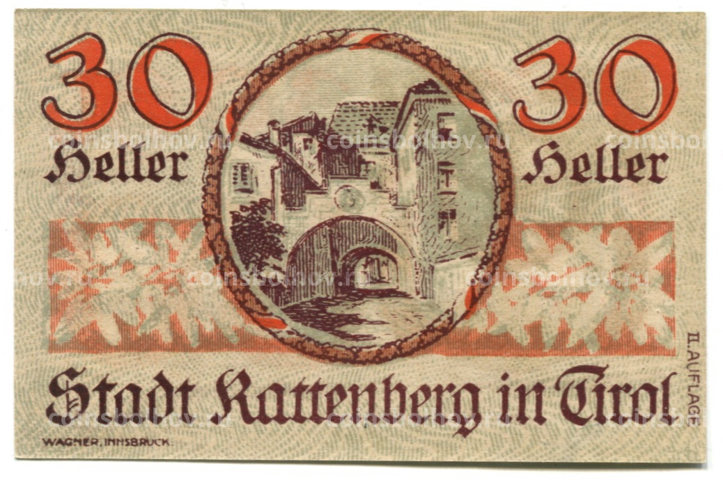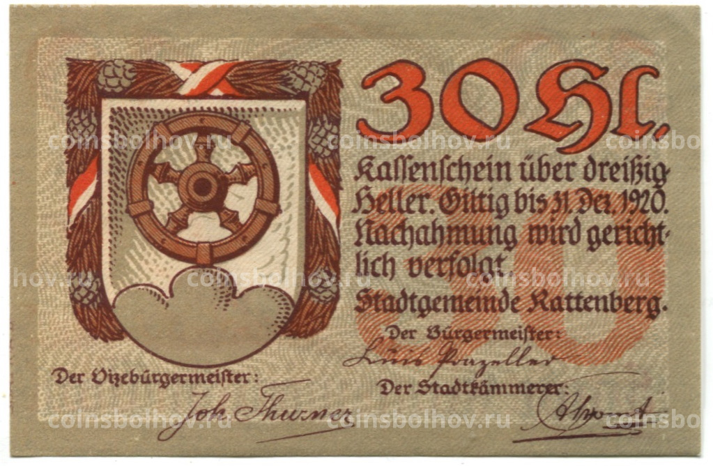 30 геллеров 1920 года Австрия — Раттенберг (нотгельд)