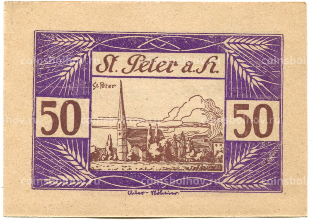 Банкнота 50 геллеров 1920 года Австрия — Санкт-Петер-на-Вимберге (нотгельд)