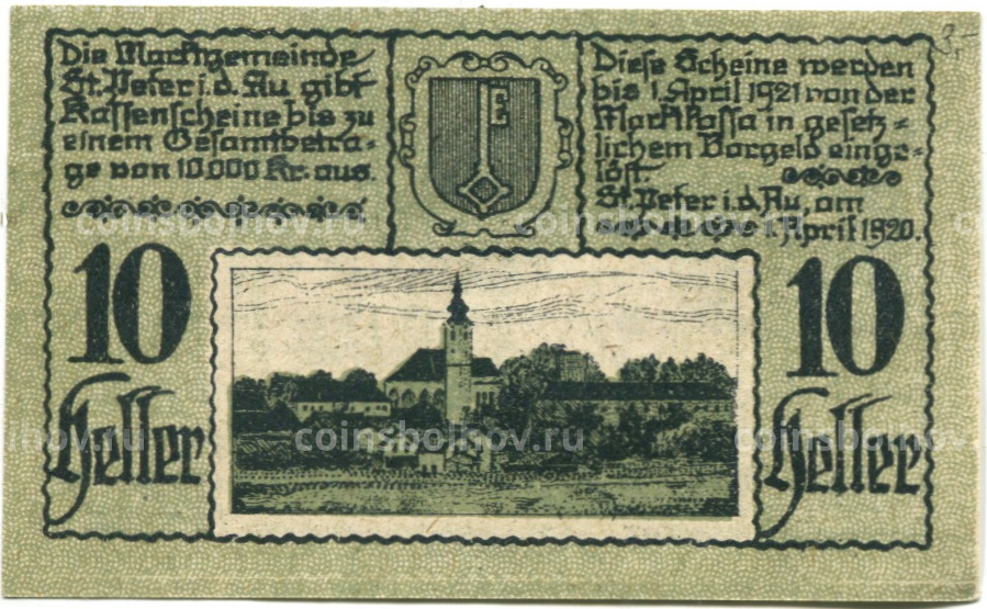 Банкнота 10 геллеров 1920 года Австрия — Санкт-Петер-ин-дер-Ау (нотгельд)