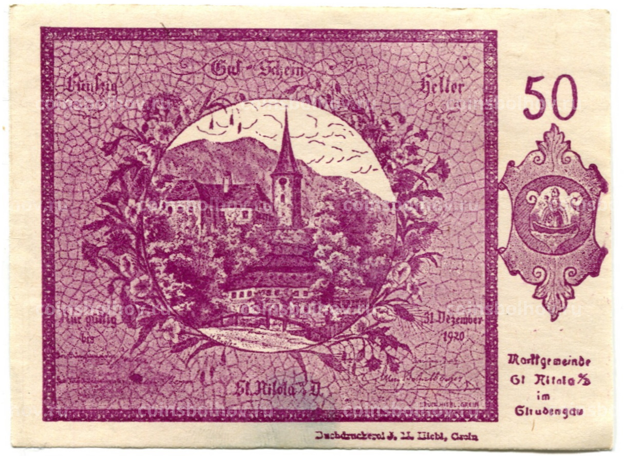 Банкнота 50 геллеров 1920 года Австрия — Санкт-Никола на Дунае (нотгельд)