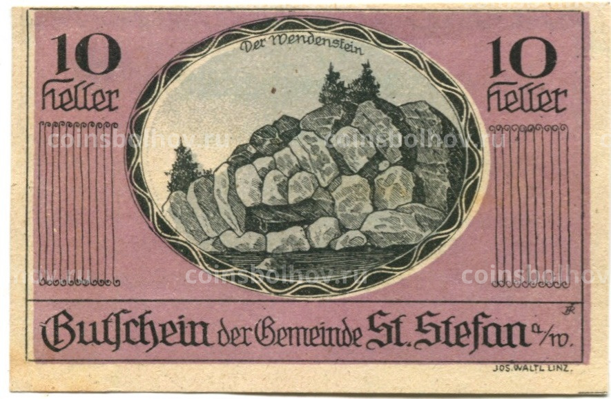 Банкнота 10 геллеров 1920 года Австрия — Санкт-Штефан в Вальде (нотгельд)