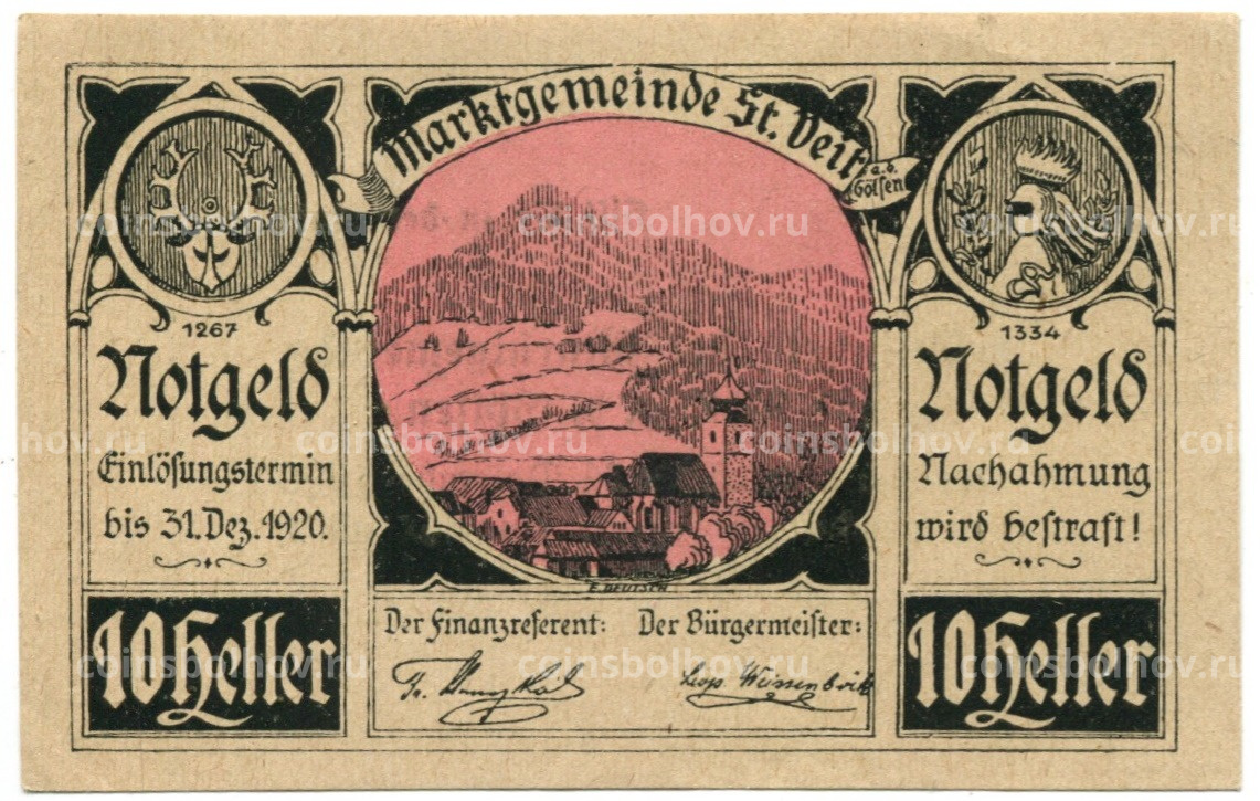 Банкнота 10 геллеров 1920 года Австрия — Санкт-Файт-ан-дер-Гёльзен (нотгельд)