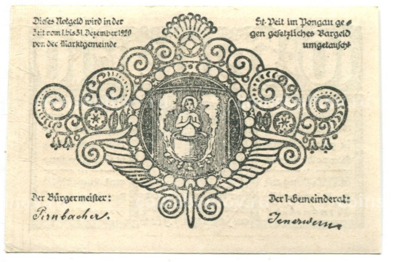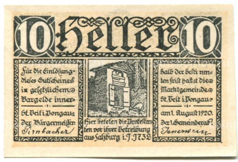 Банкнота 10 геллеров 1920 года Австрия — Санкт-Файт-им-Понгау (нотгельд)