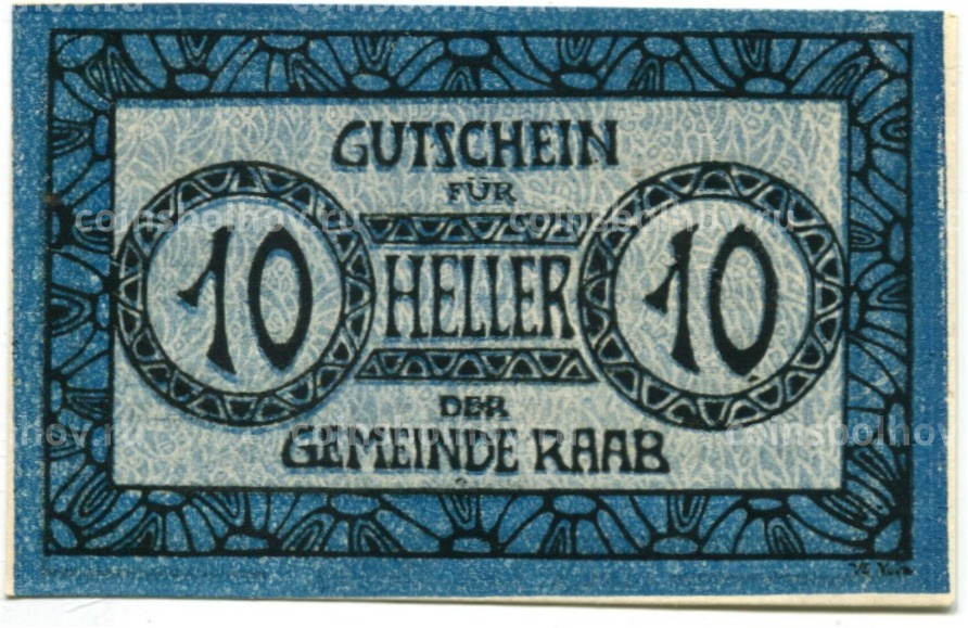 10 геллеров 1920 года Австрия — Рааб (нотгельд)