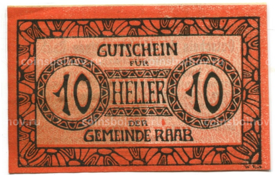 10 геллеров 1920 года Австрия — Рааб (нотгельд)