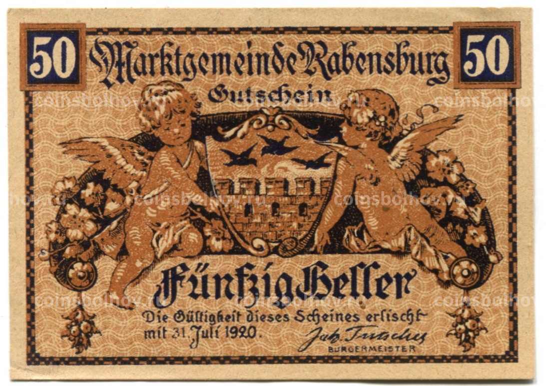50 геллеров 1920 года Австрия — Рабенсбург (нотгельд)