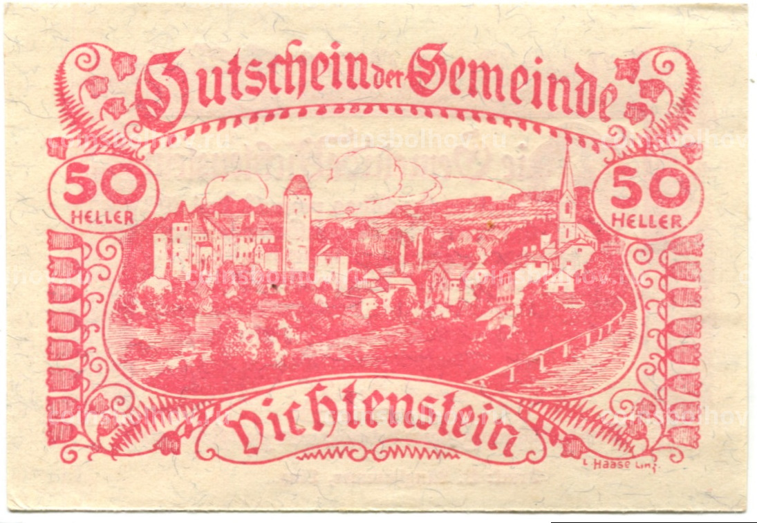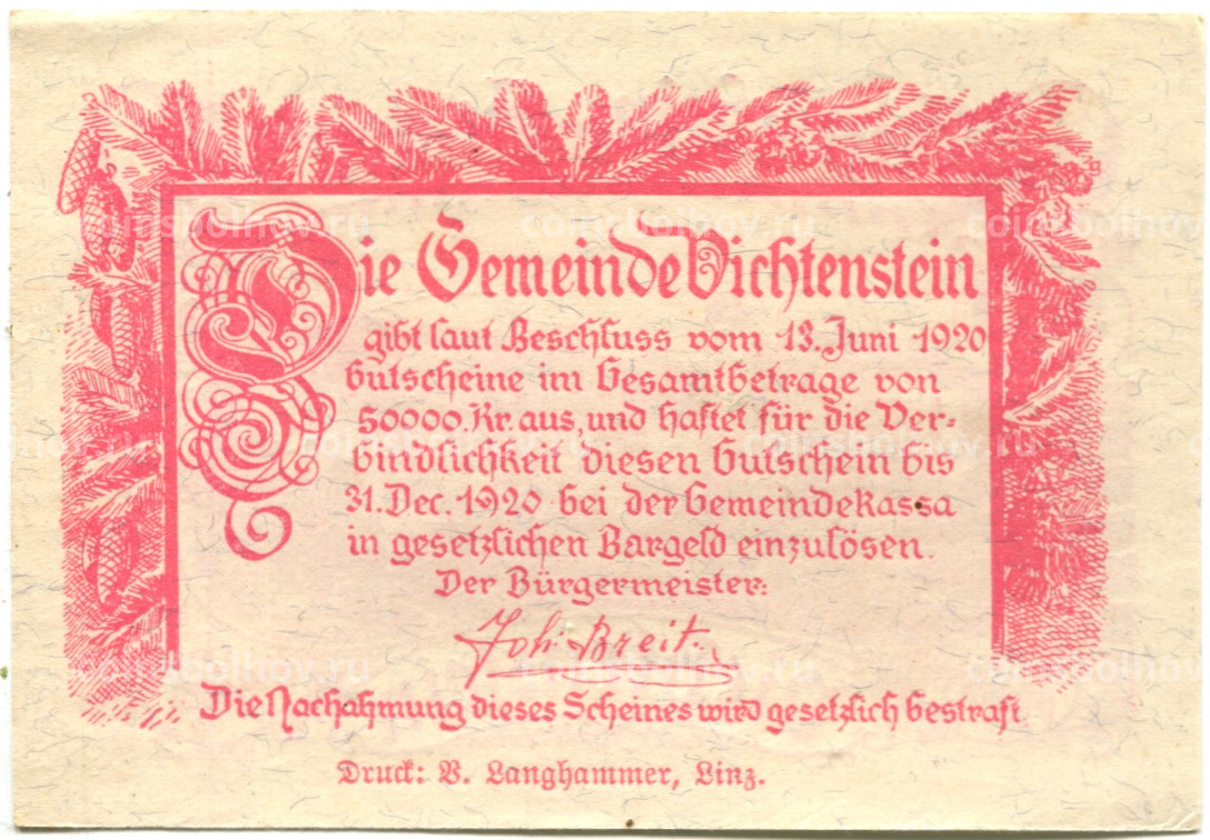 50 геллеров 1920 года Австрия — Вихтенштайн (нотгельд)