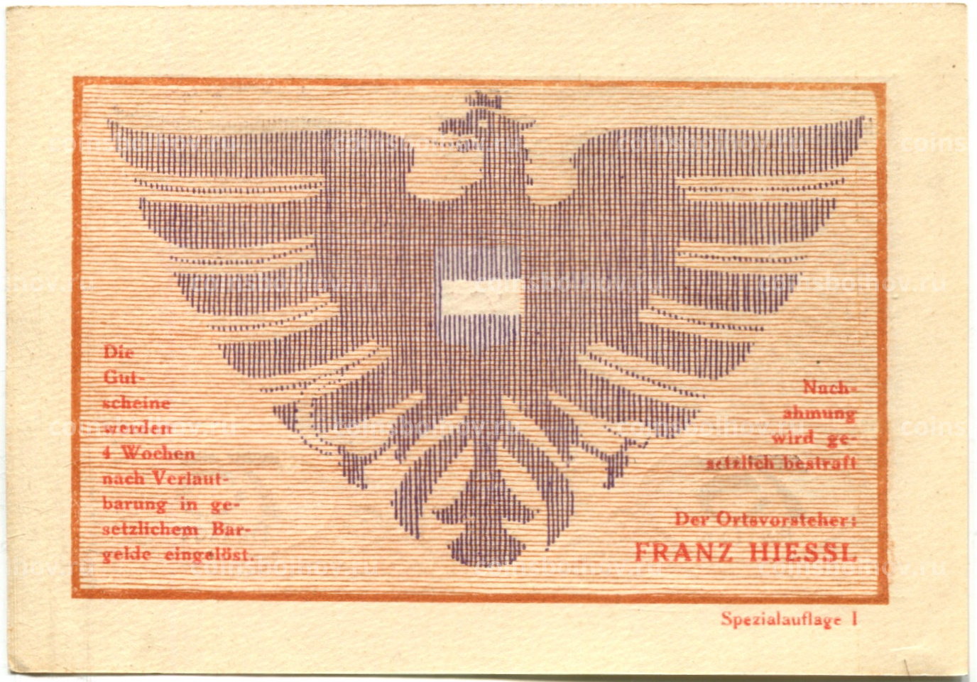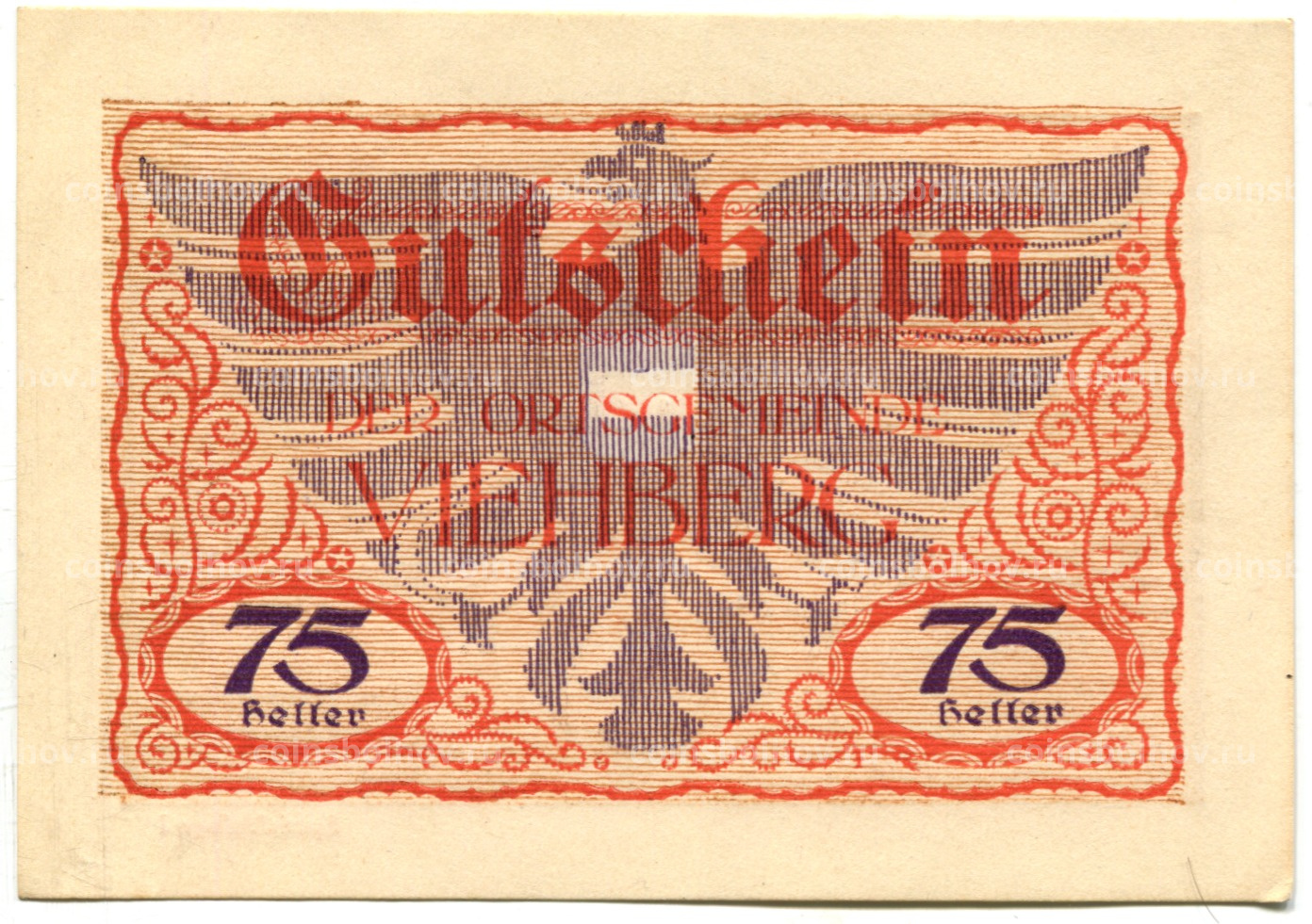 75 геллеров 1920 года Австрия — Виехберг (нотгельд)