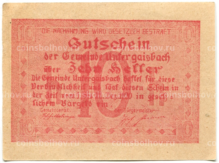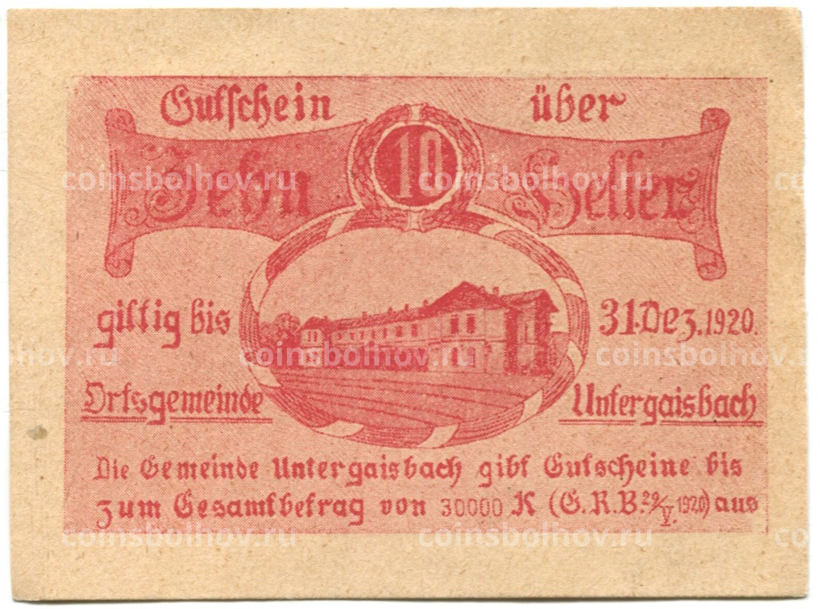 10 геллеров 1920 года Австрия — Унтерайсбах (нотгельд)