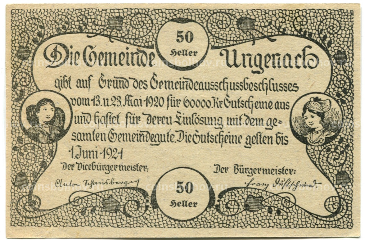 50 геллеров 1920 года Австрия — Унгенах (нотгельд)