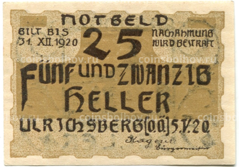 25 геллеров 1920 года Австрия — Ульрихсберг (нотгельд)