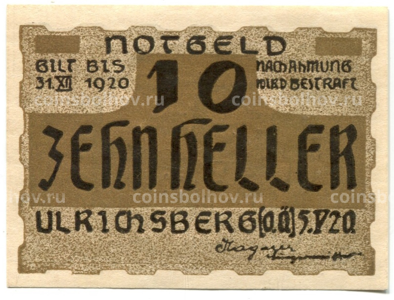 10 геллеров 1920 года Австрия — Ульрихсберг (нотгельд)