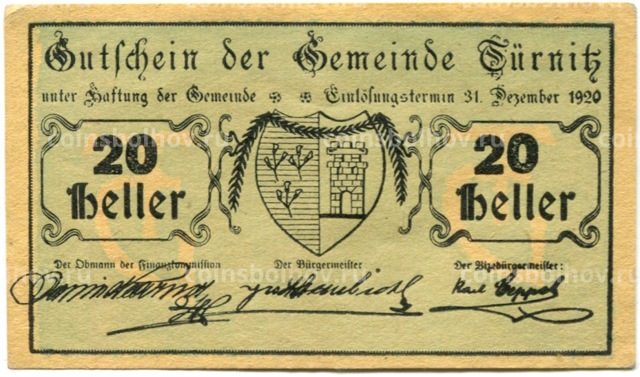 20 геллеров 1920 года Австрия — Тюрниц (нотгельд)