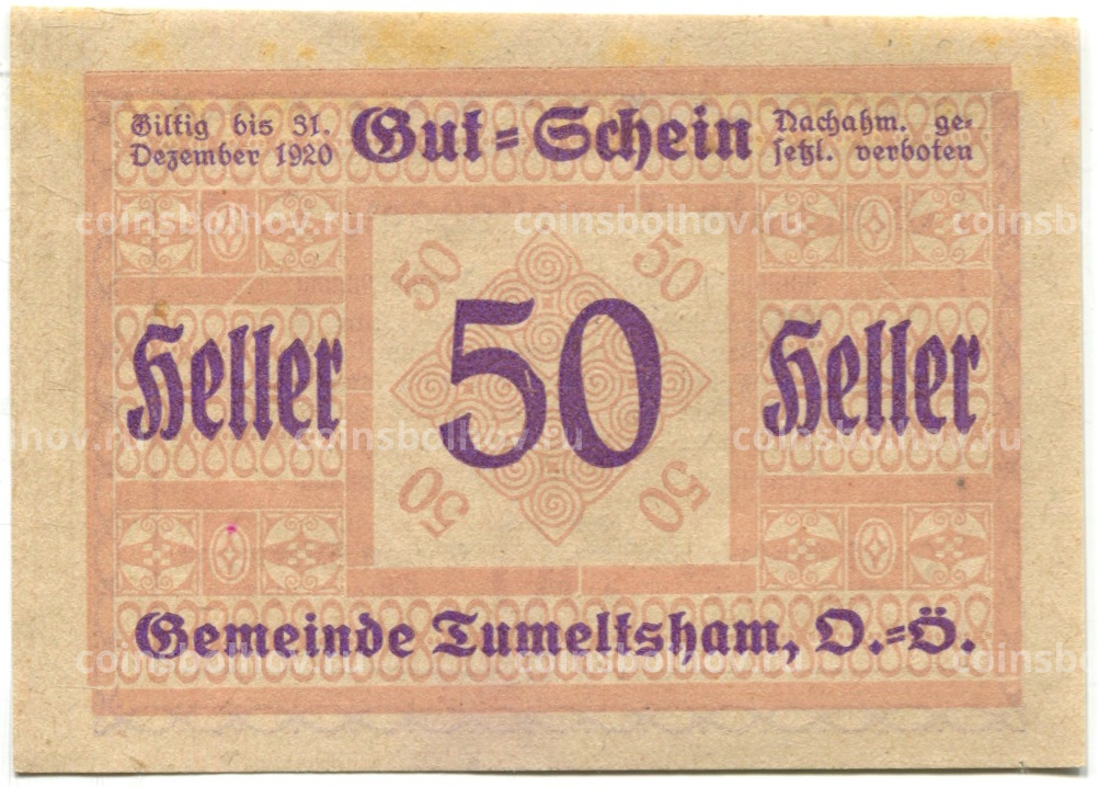 50 геллеров 1920 года Австрия — Тумельсхат (нотгельд)