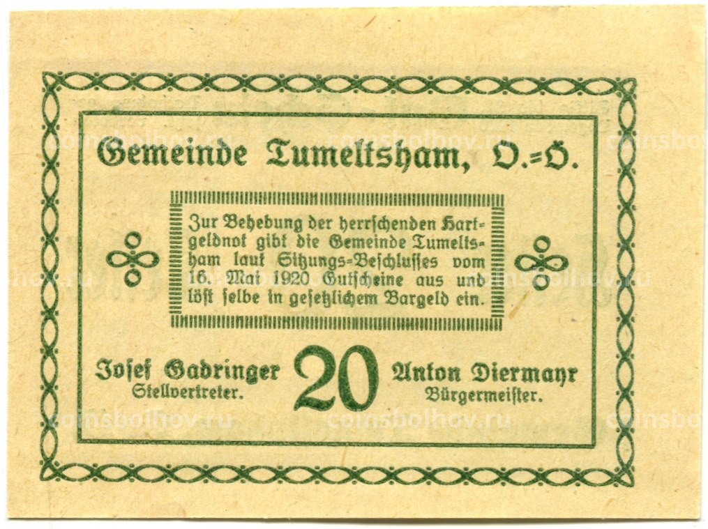 20 геллеров 1920 года Австрия — Тумельсхат (нотгельд)