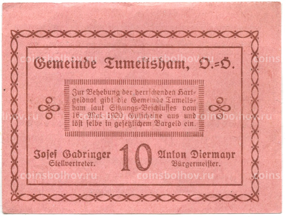 10 геллеров 1920 года Австрия — Тумельсхат (нотгельд)