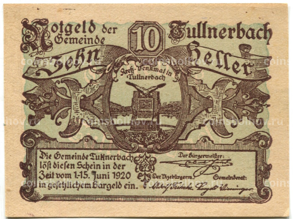10 геллеров 1920 года Австрия — Тульнербах (нотгельд)