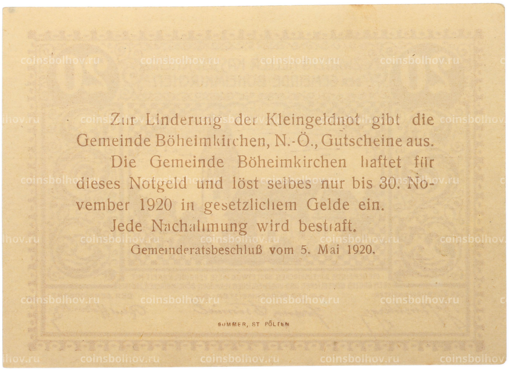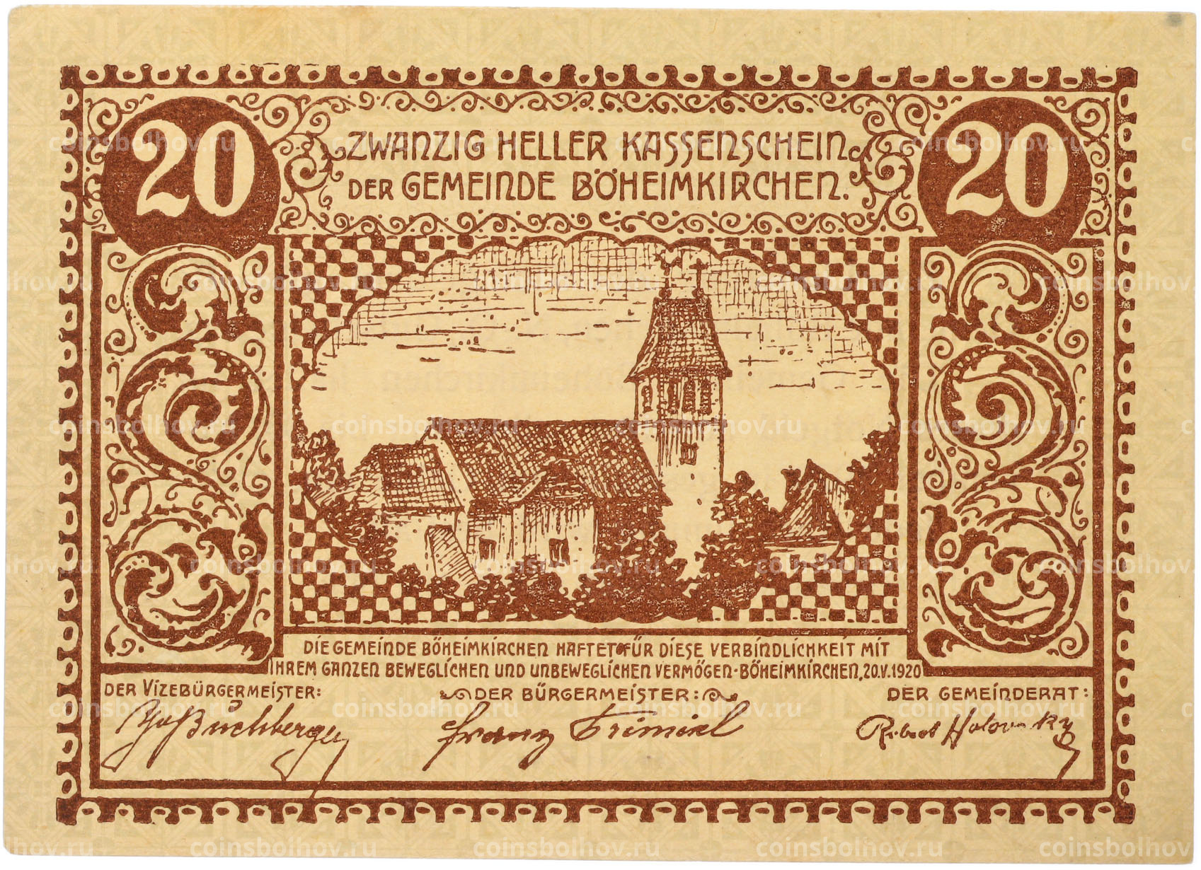 Банкнота 20 геллеров 1920 года Австрия — община Бёхаймкирхен (Нотгельд)