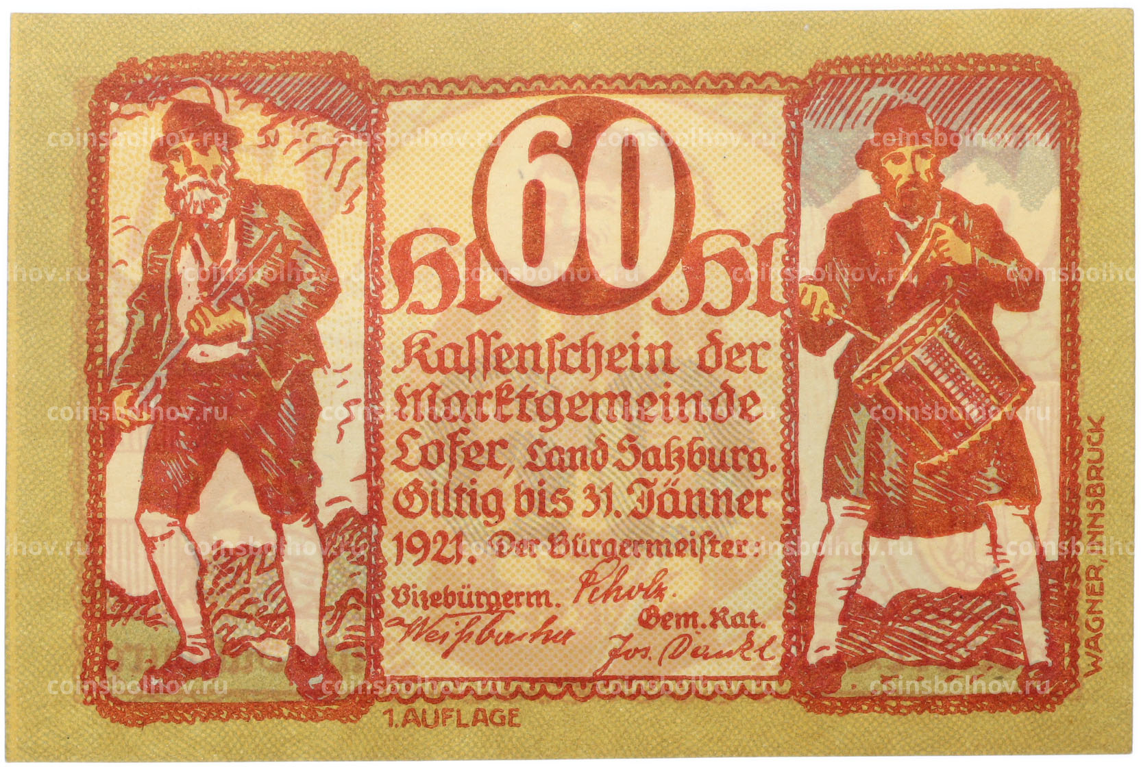 Банкнота 60 геллеров 1921 года Австрия — община Лофер в Зальцбурге (Нотгельд)
