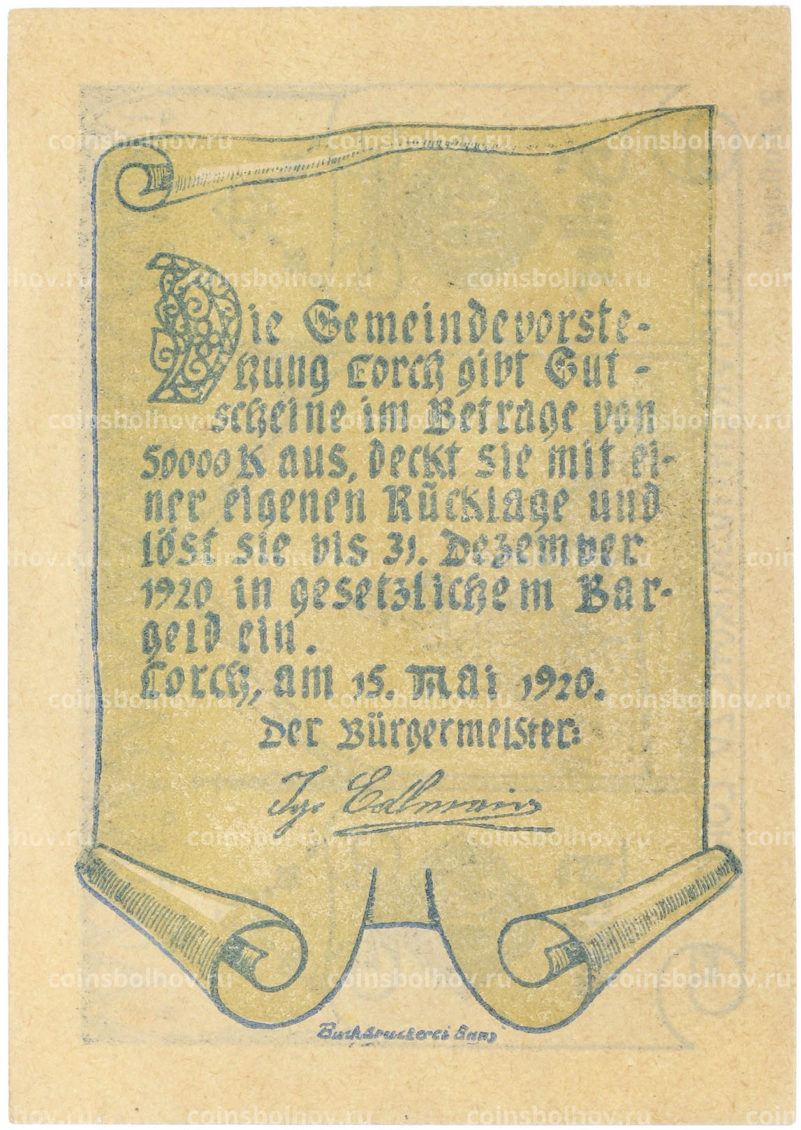 Банкнота 50 геллеров 1920 года Австрия — коммуна Лорх (Нотгельд)