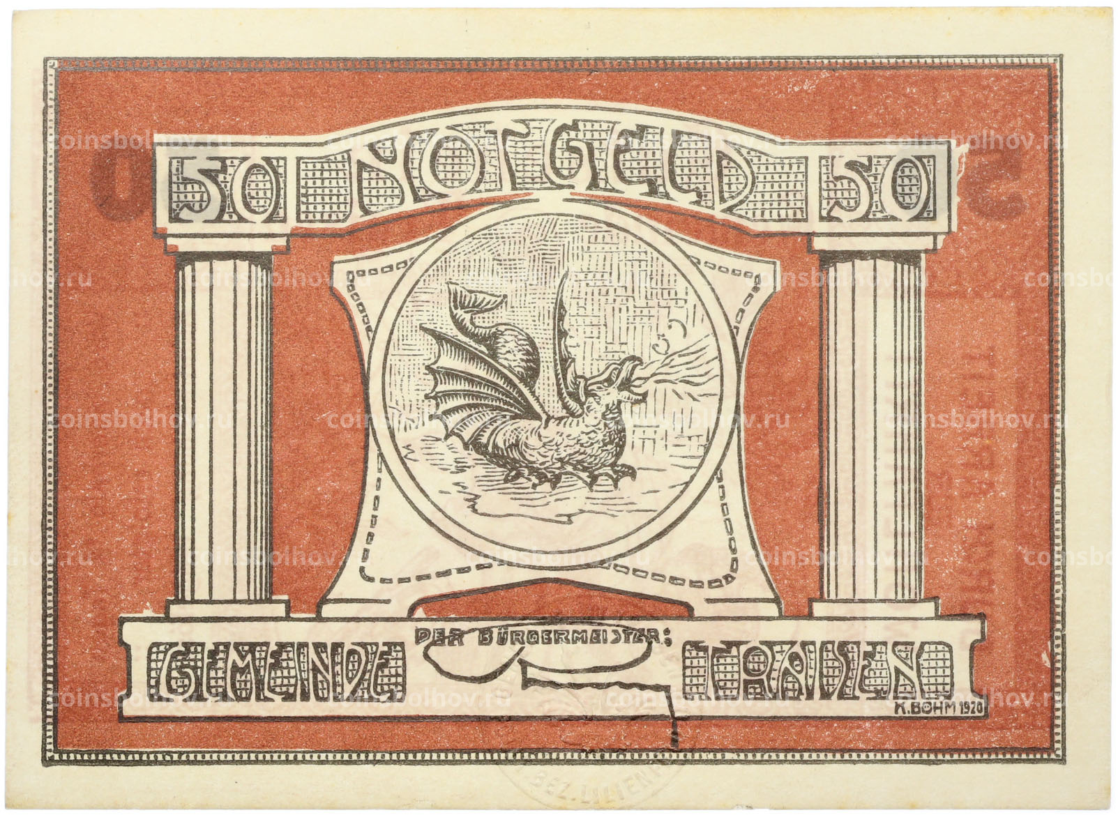 Банкнота 50 геллеров 1920 года Австрия — община Трайзен (Нотгельд)