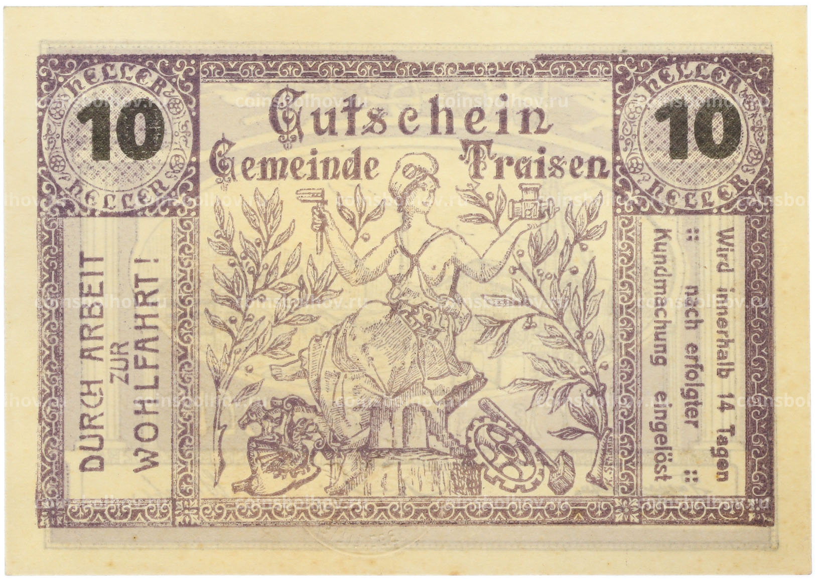 Банкнота 10 геллеров 1920 года Австрия — община Трайзен (Нотгельд)
