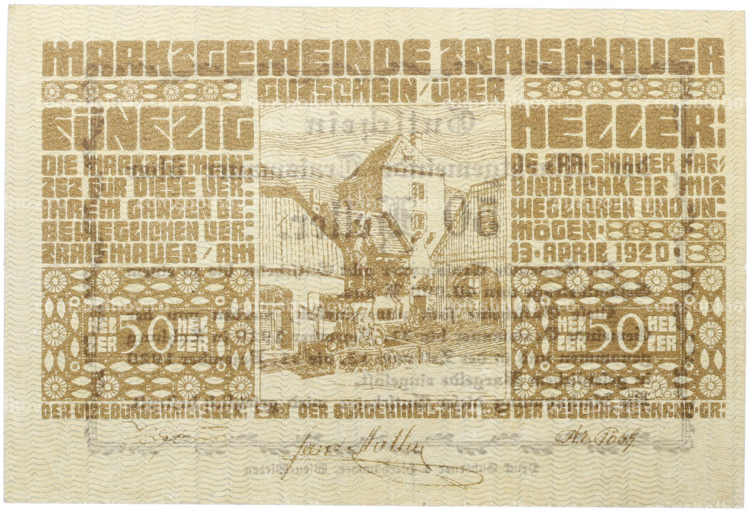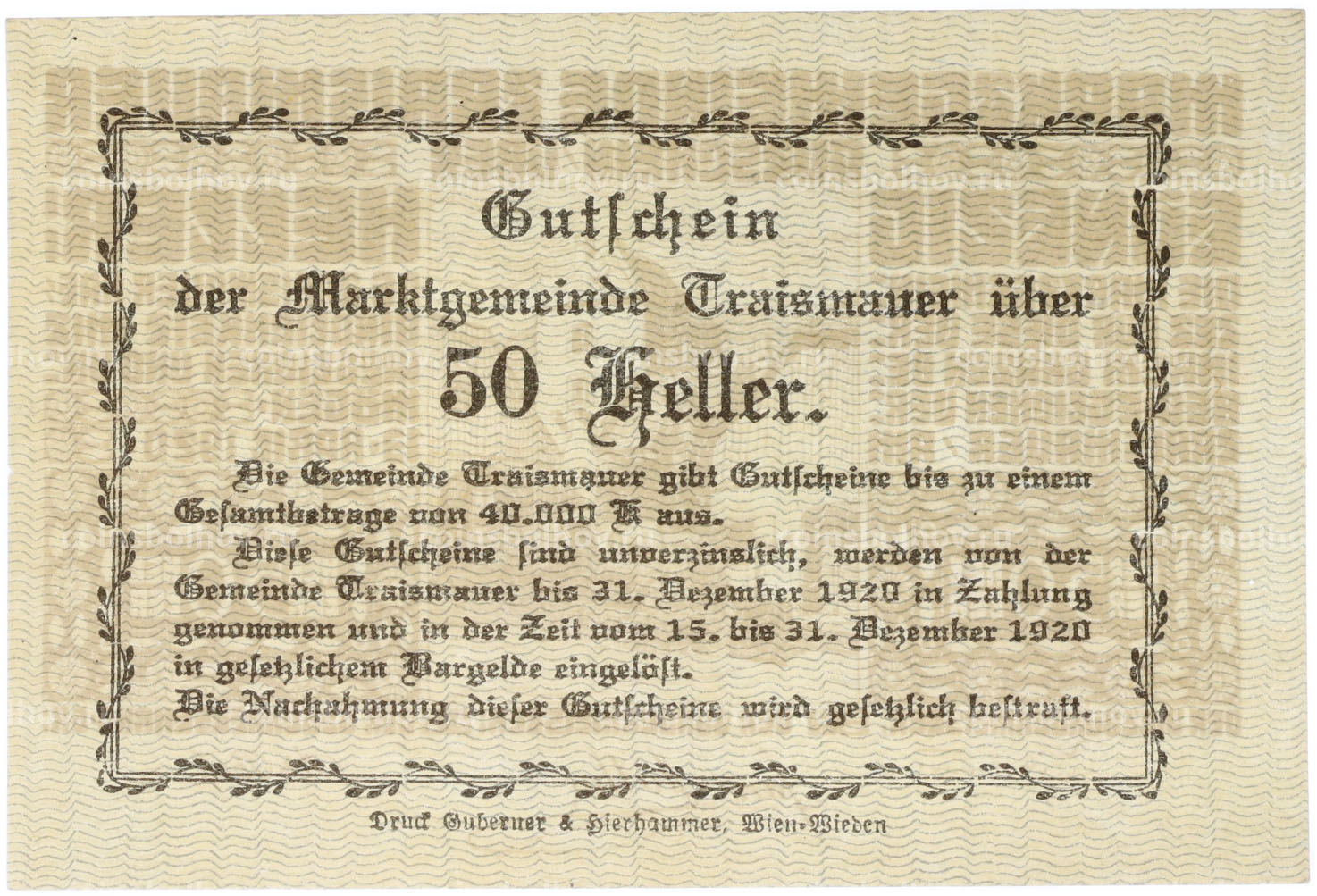 Банкнота 50 геллеров 1920 года Австрия — город Трайсмауэр (Нотгельд)