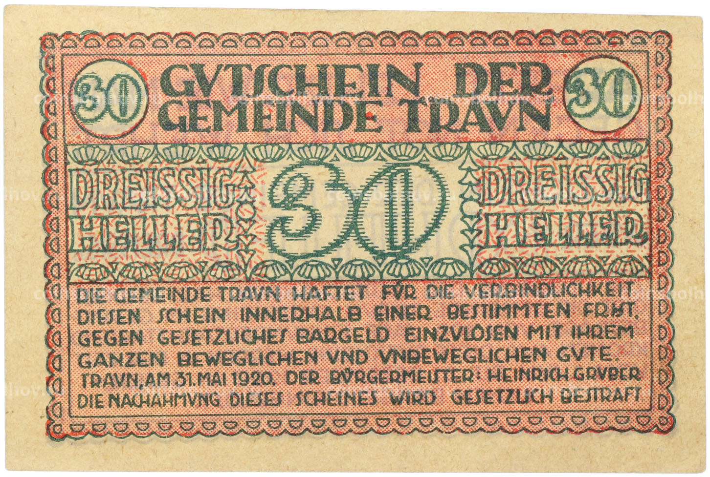 Банкнота 30 геллеров 1920 года Австрия — община Траун (Нотгельд)