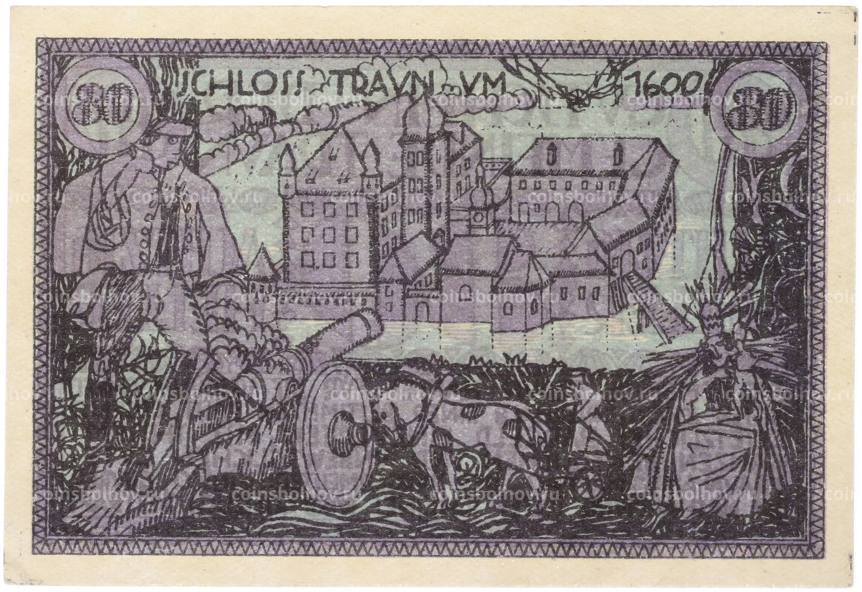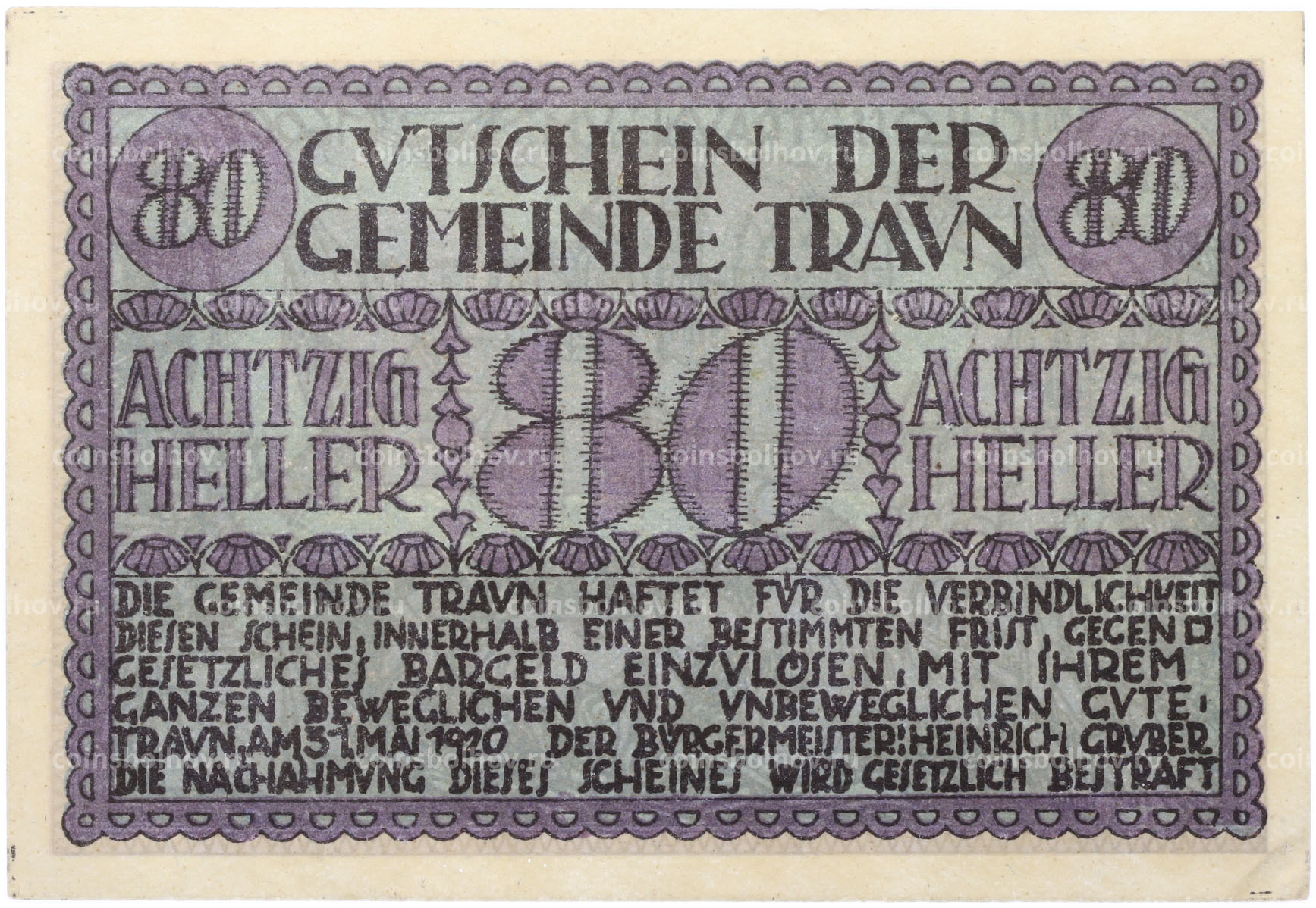 Банкнота 80 геллеров 1920 года Австрия — община Траун (Нотгельд)