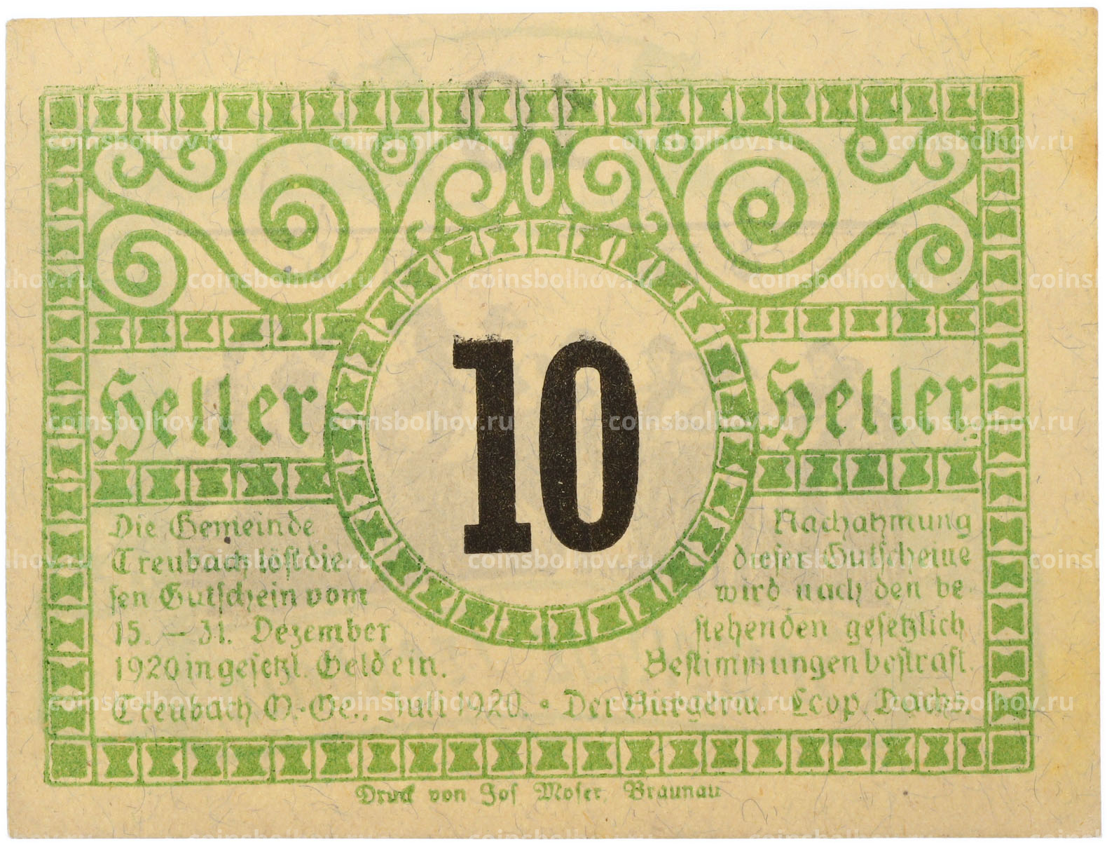 Банкнота 10 геллеров 1920 года Австрия — община Треубах (Нотгельд)
