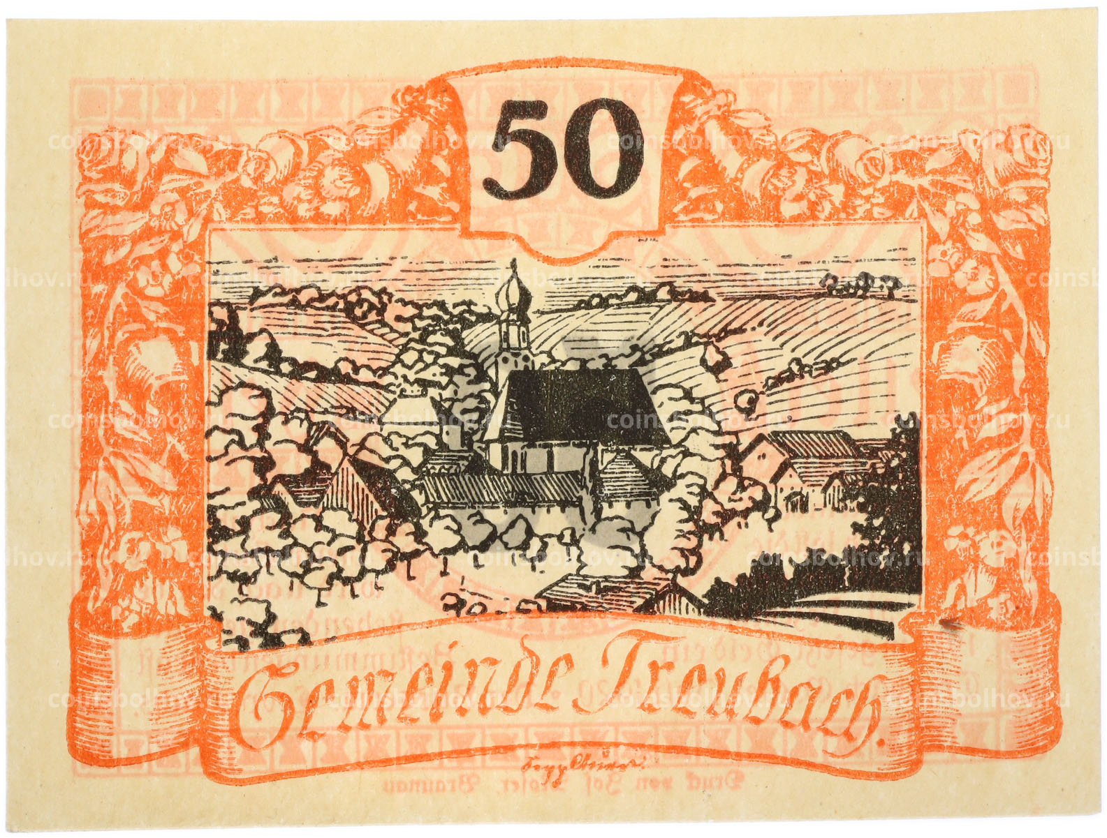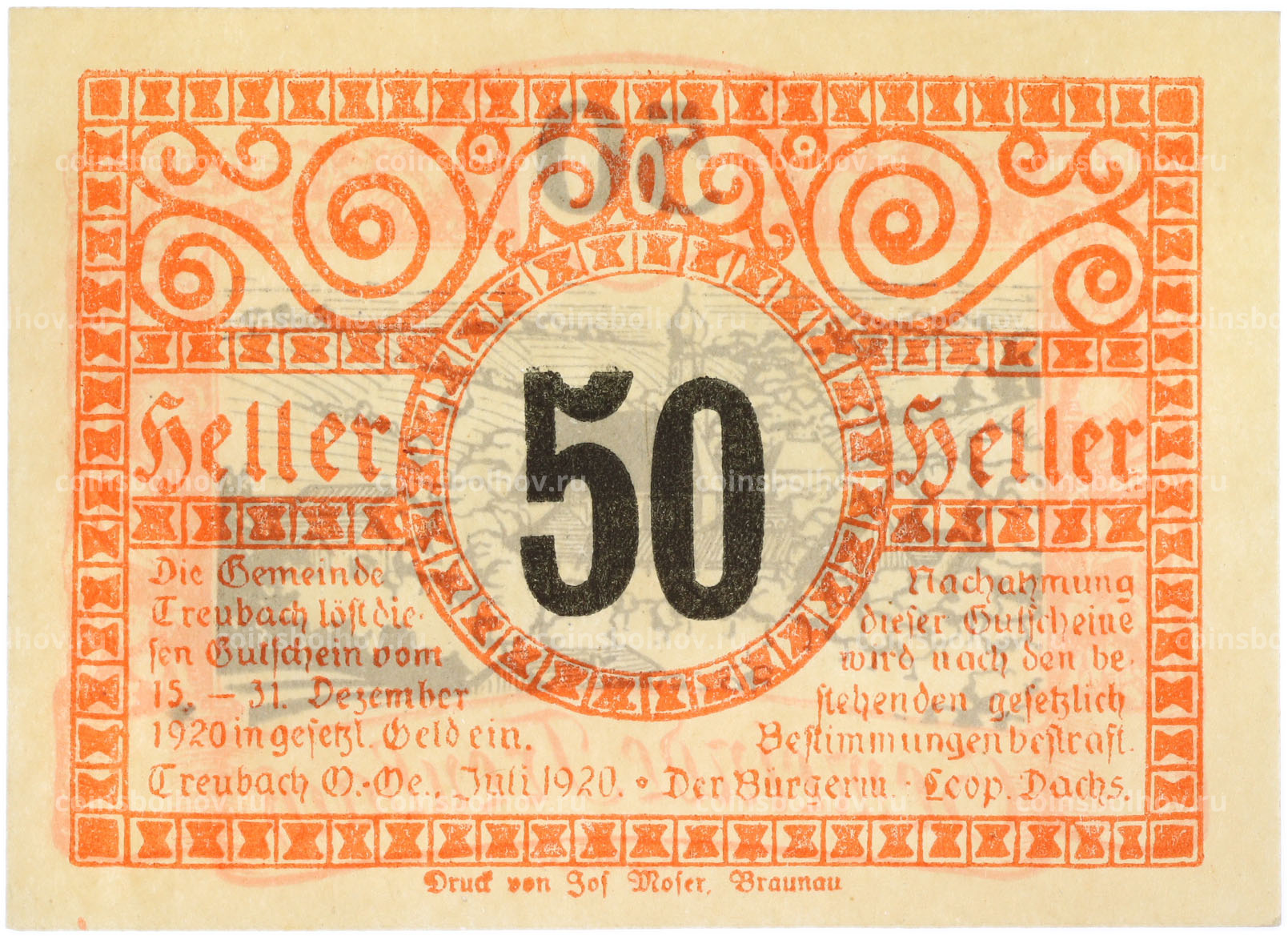 Банкнота 50 геллеров 1920 года Австрия — община Треубах (Нотгельд)