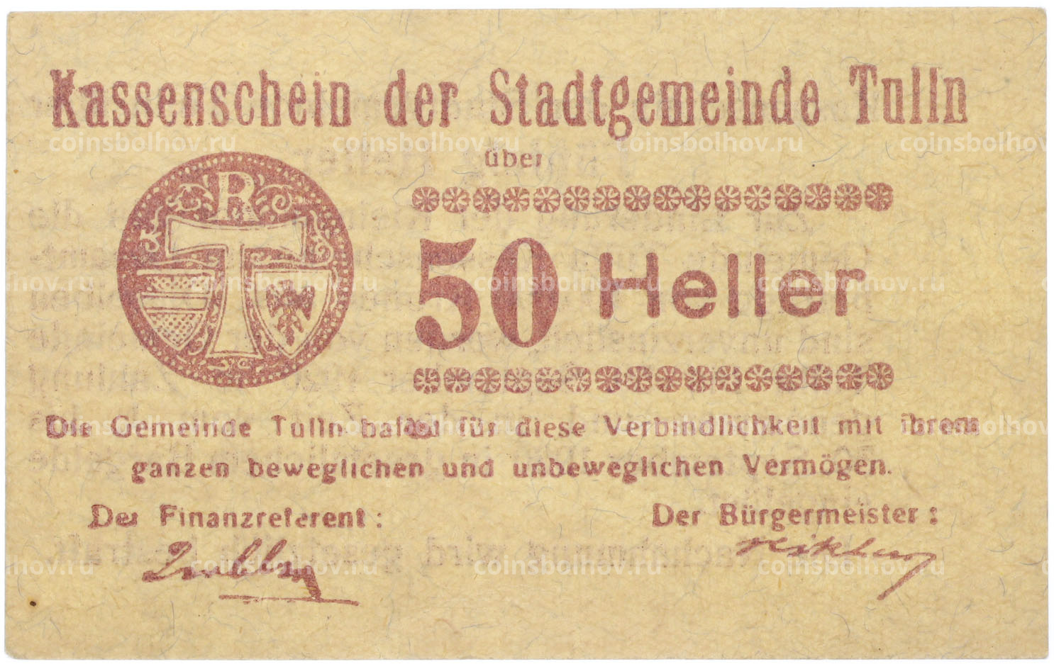 Банкнота 50 геллеров 1920 года Австрия — город Тульн (Нотгельд)
