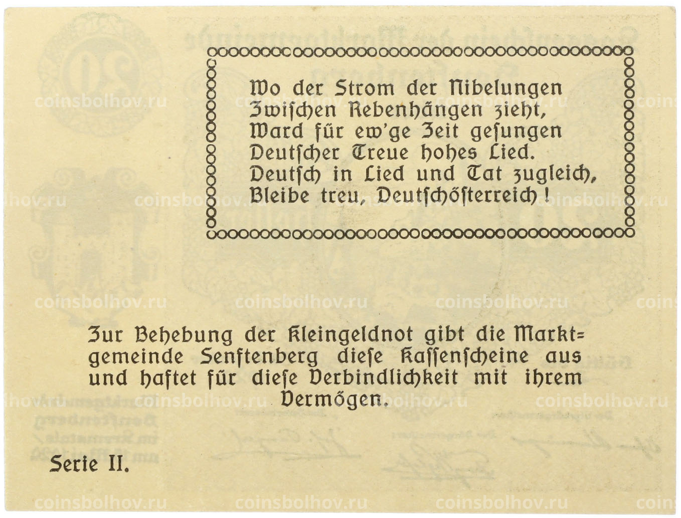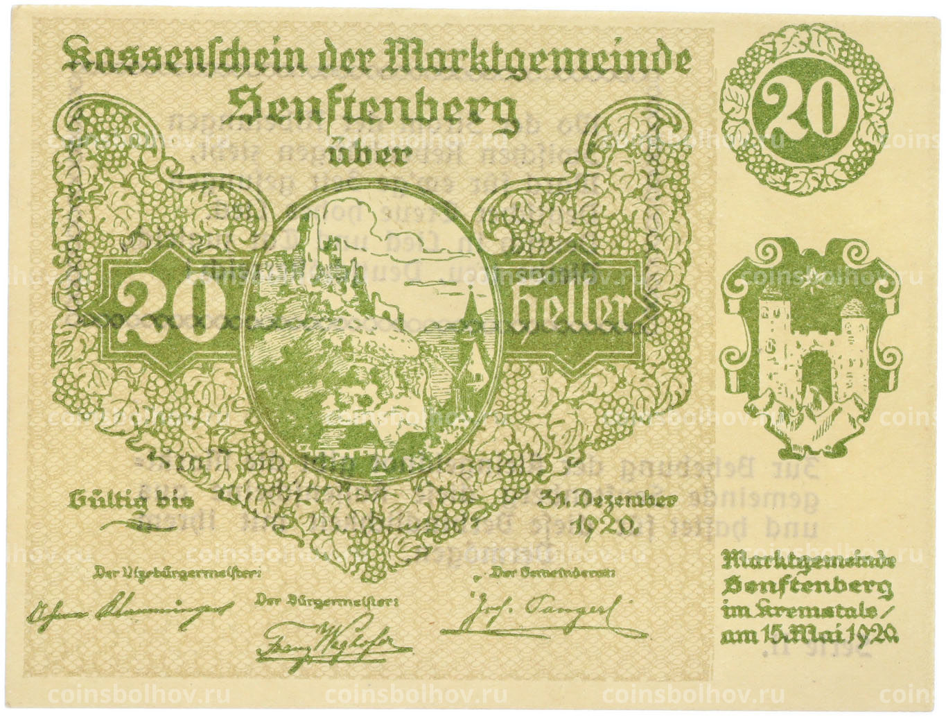 Банкнота 20 геллеров 1920 года Австрия — община Зенфтенберг (Нотгельд)