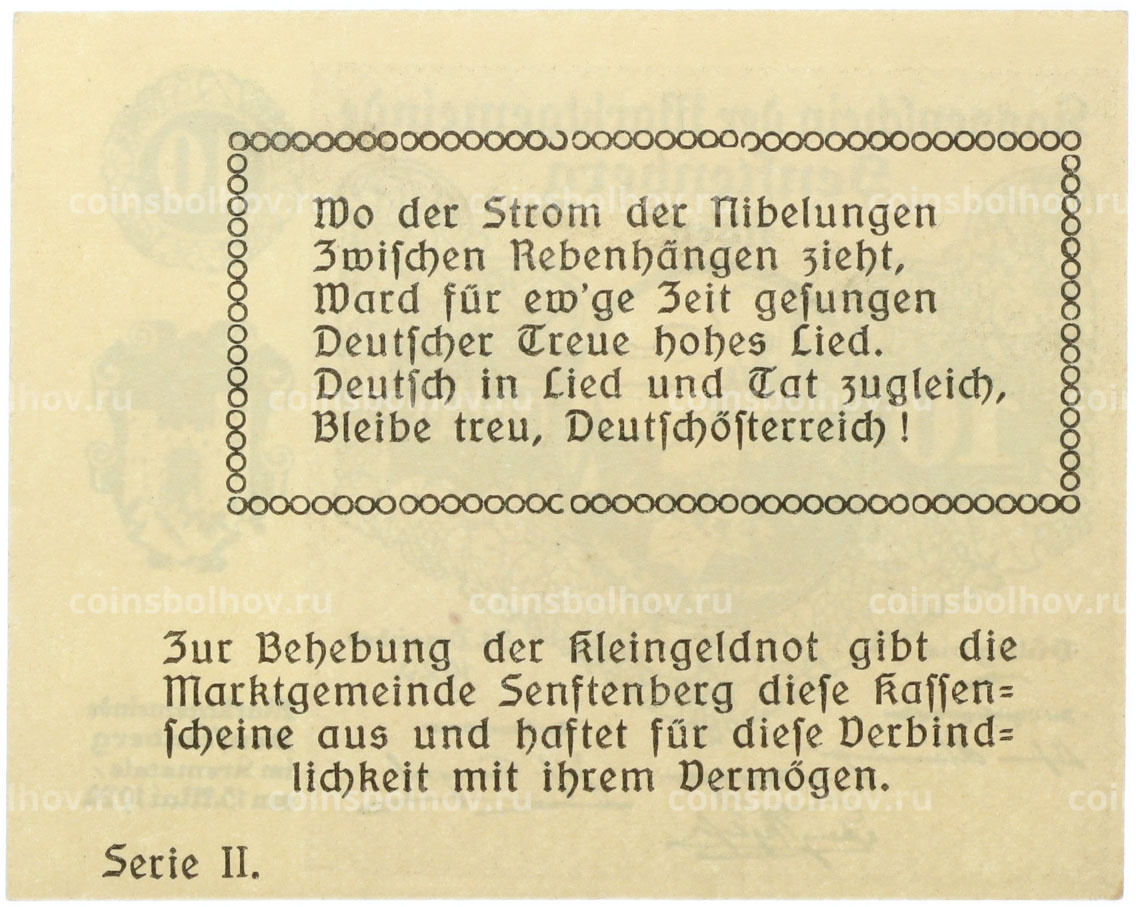 Банкнота 10 геллеров 1920 года Австрия — община Зенфтенберг (Нотгельд)