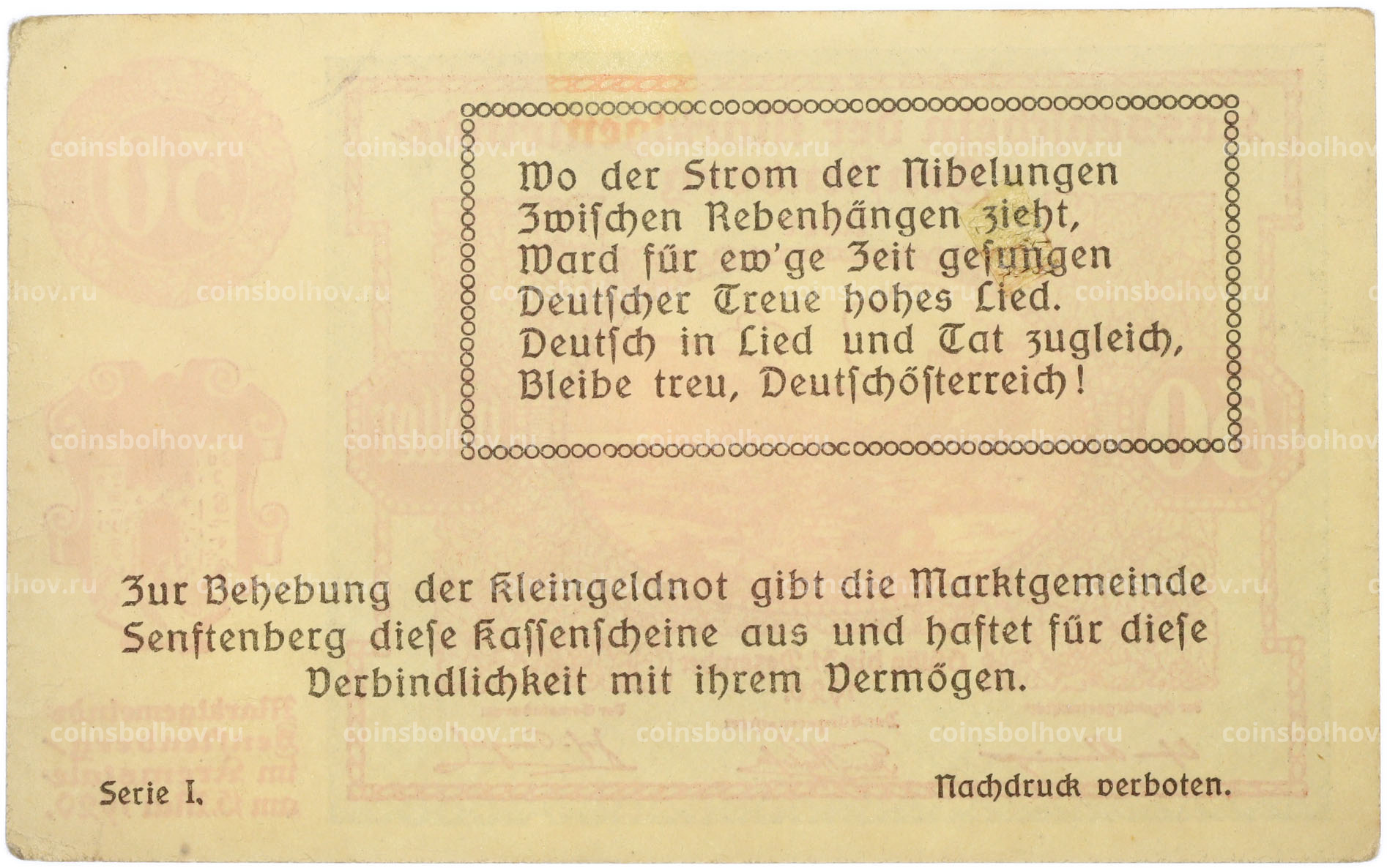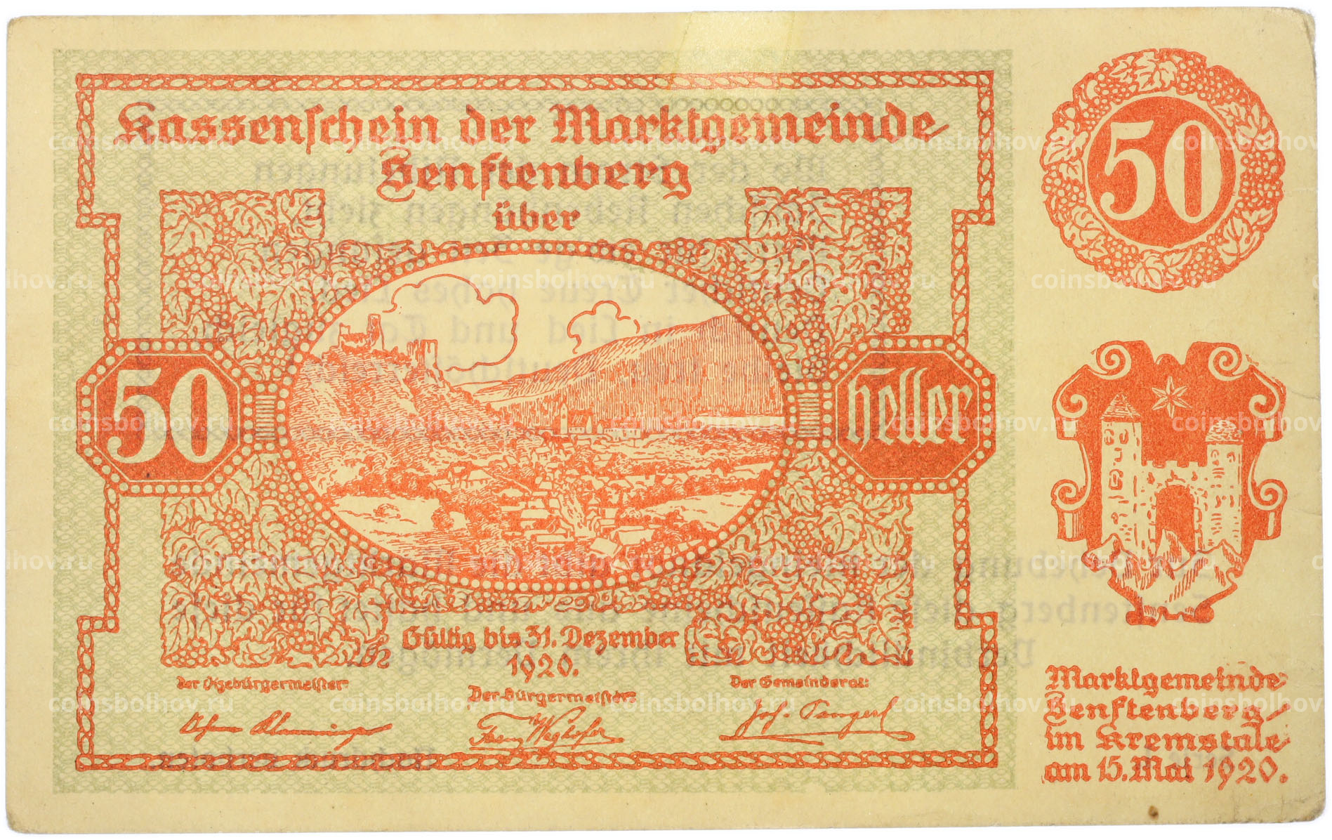 Банкнота 50 геллеров 1920 года Австрия — община Зенфтенберг (Нотгельд)