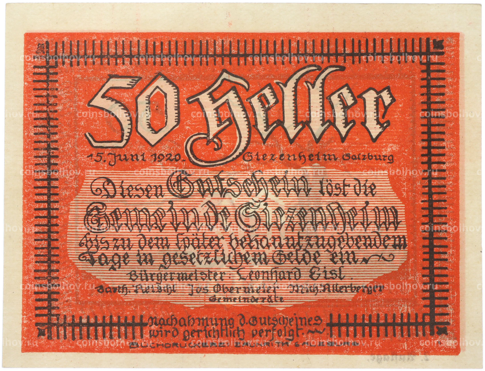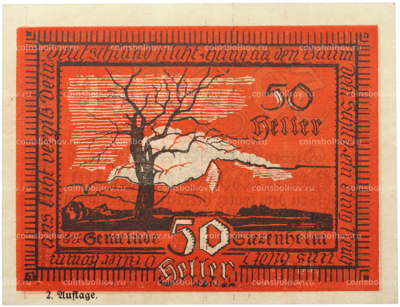 Банкнота 50 геллеров 1920 года Австрия — община Зиценхайм (Нотгельд)