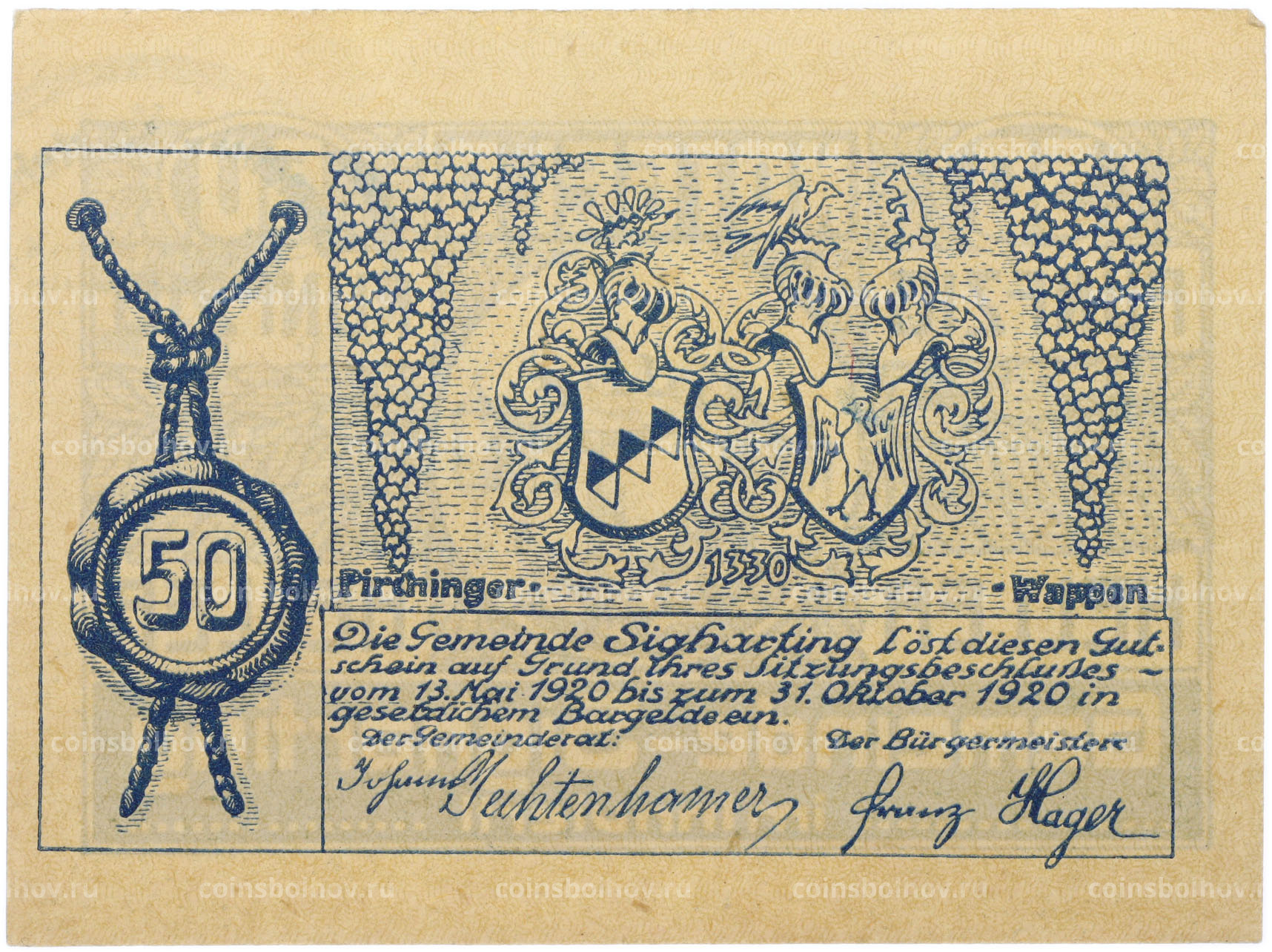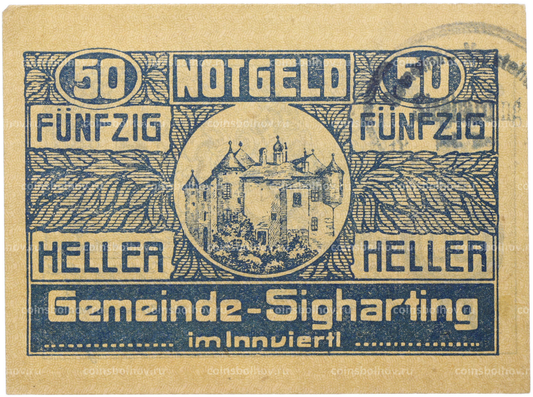 Банкнота 50 геллеров 1920 года Австрия — община Зигхартин (Нотгельд)