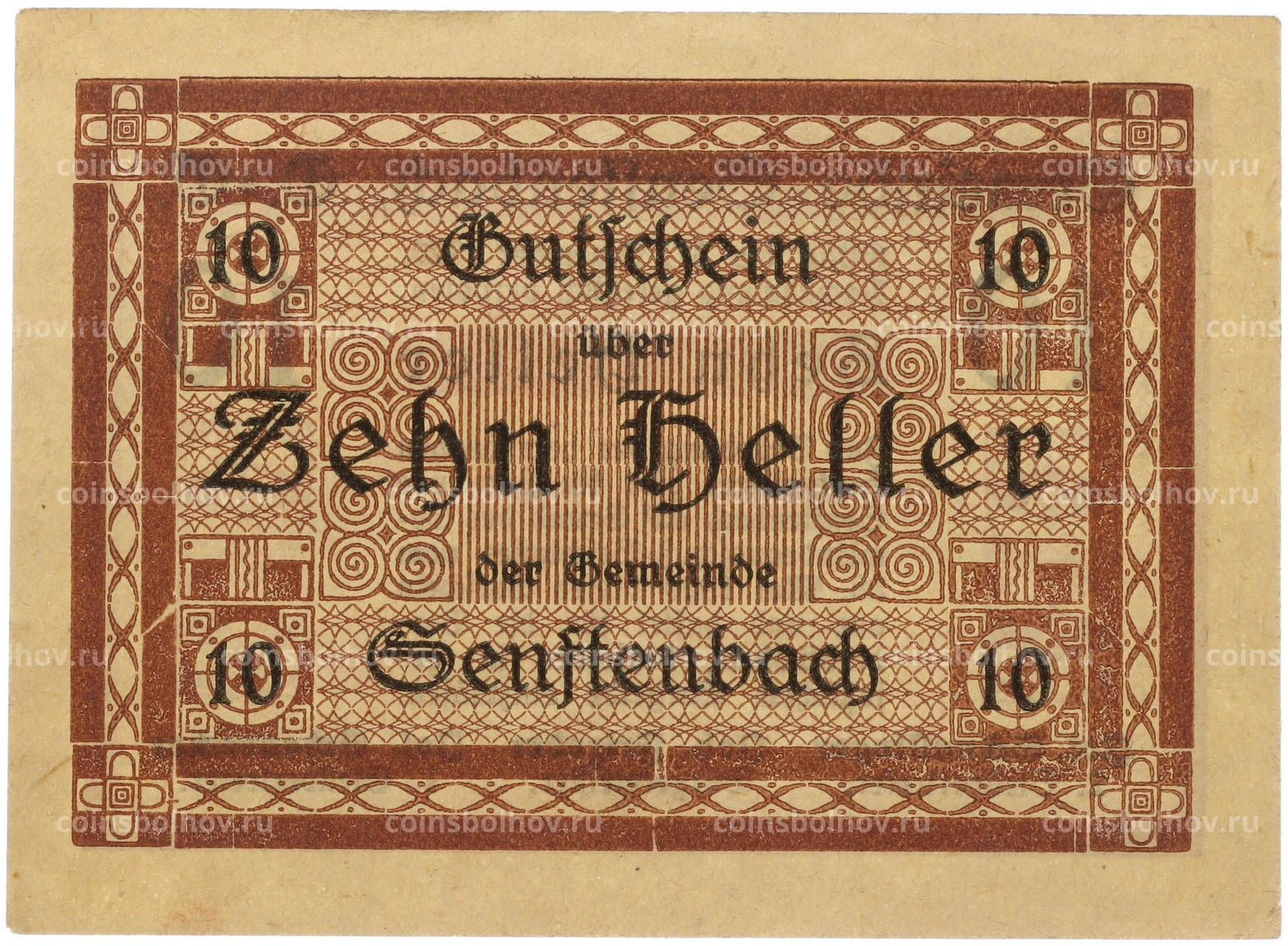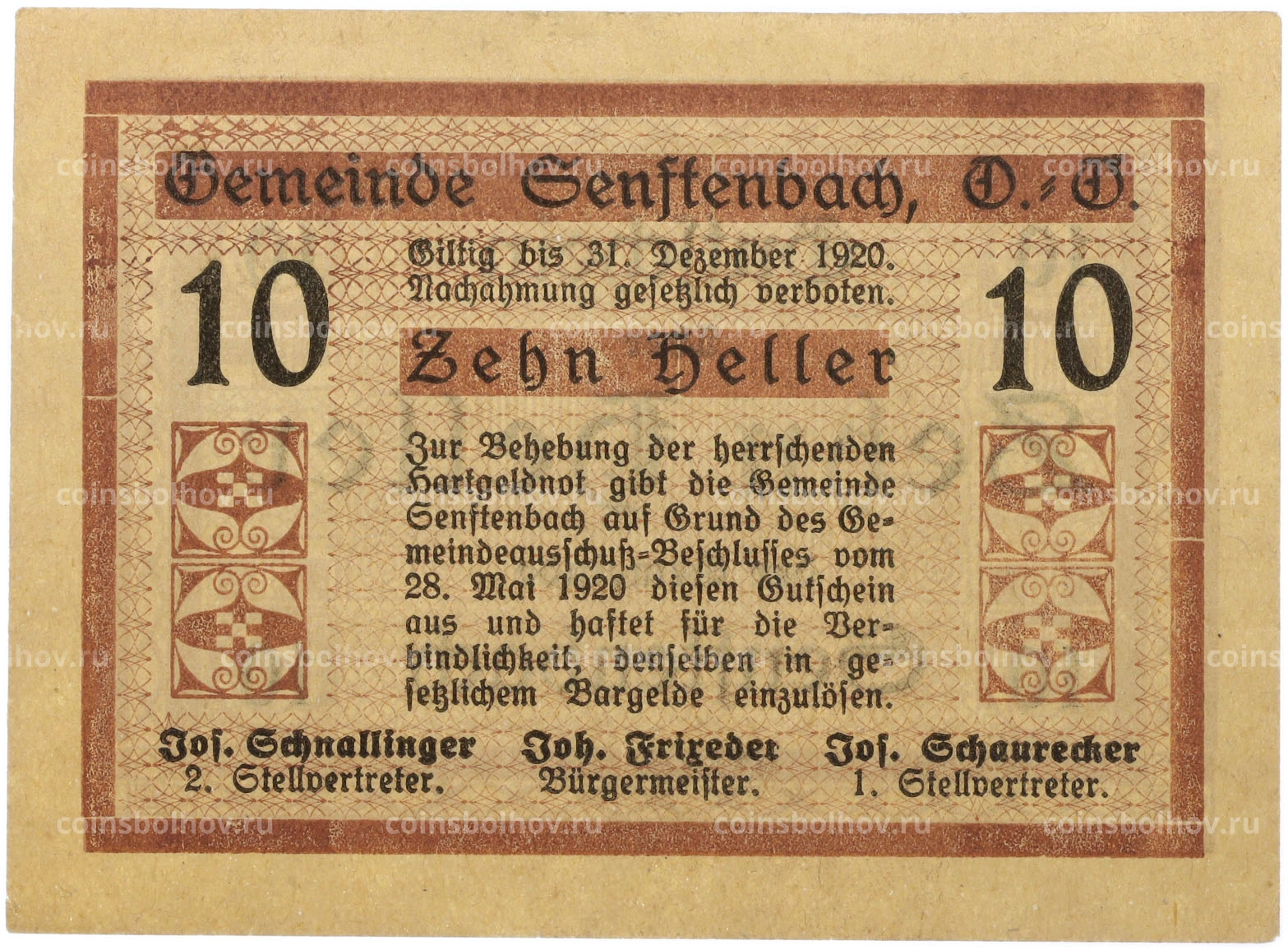Банкнота 10 геллеров 1920 года Австрия — община Зенфтенбах (Нотгельд)