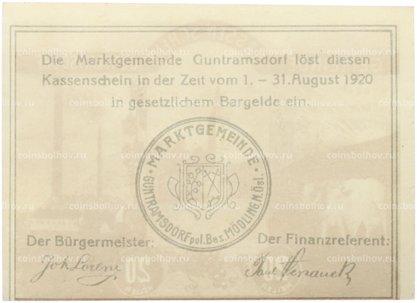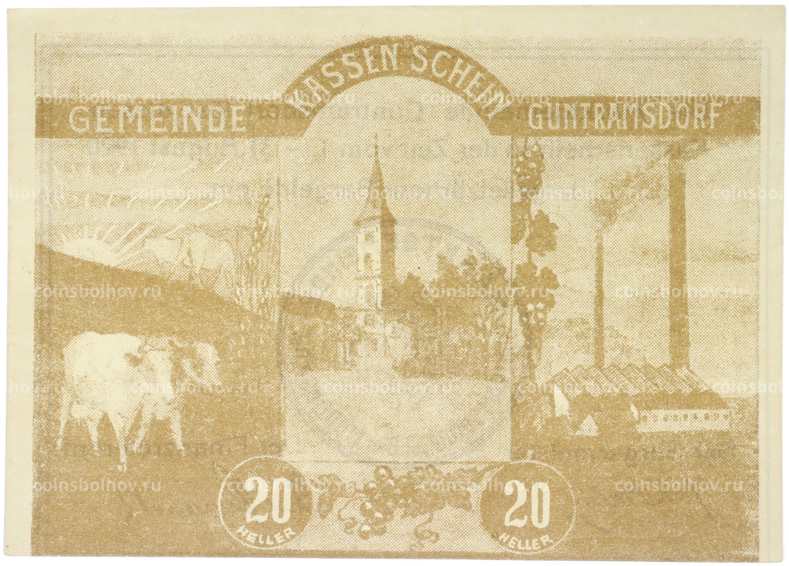 Банкнота 20 геллеров 1920 года Австрия — община Гунтрамсдорф (Нотгельд)