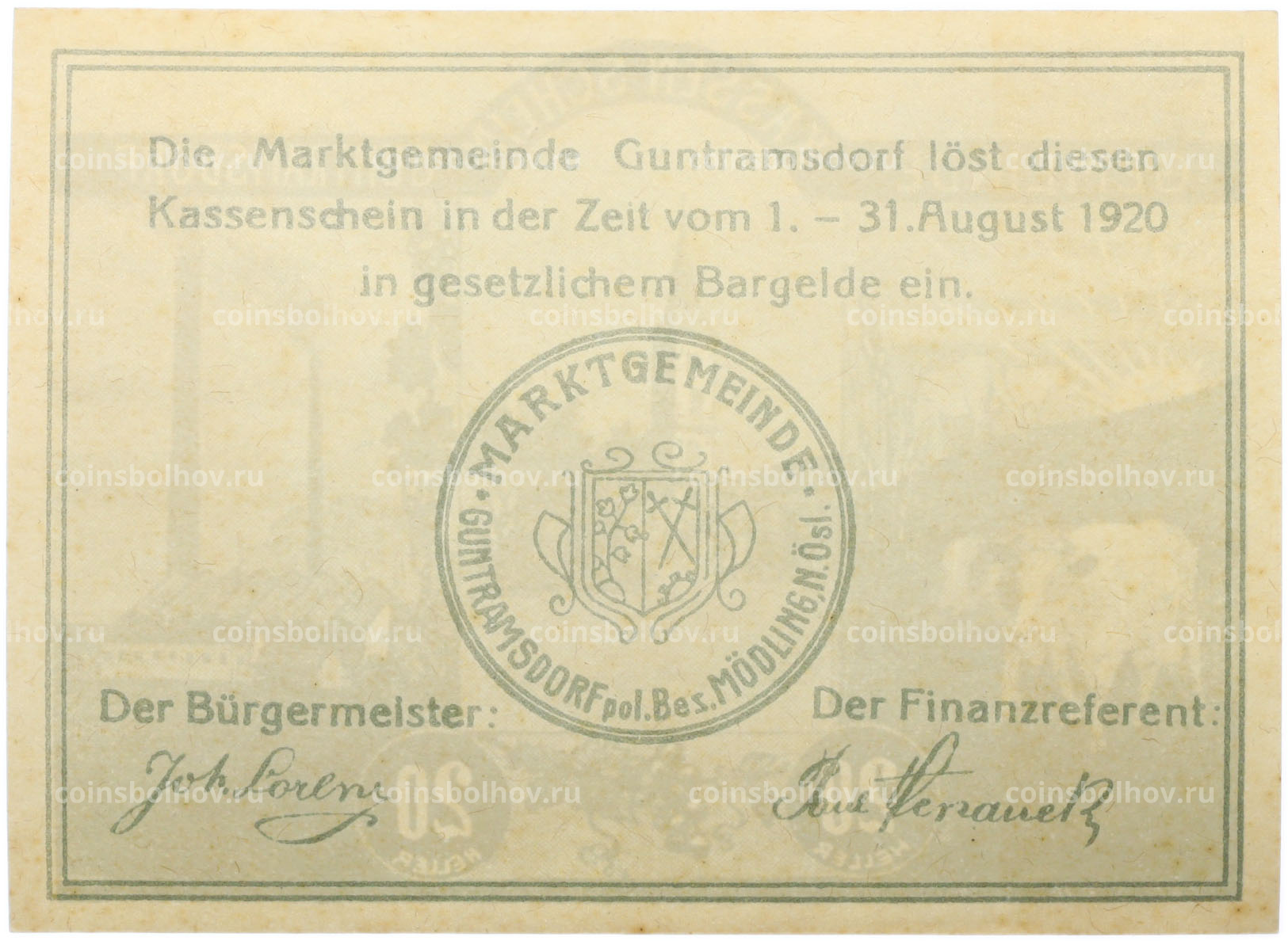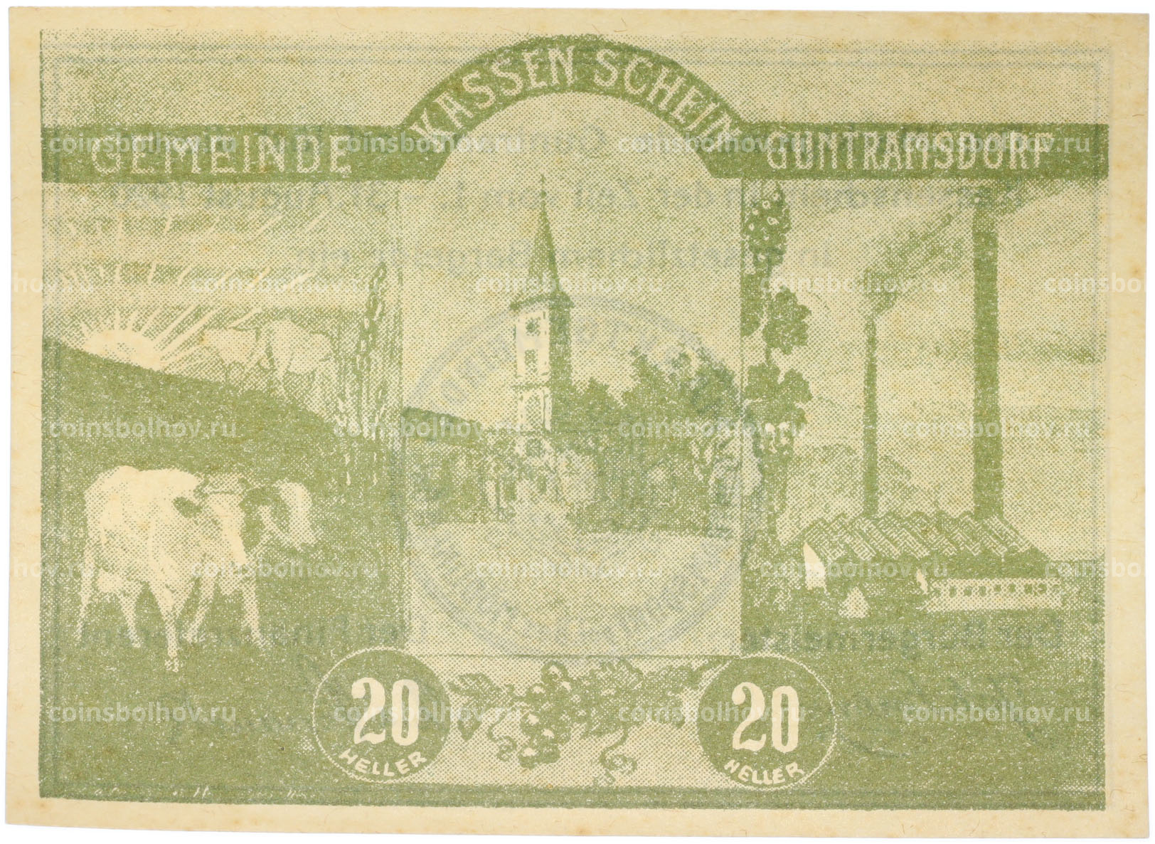 Банкнота 20 геллеров 1920 года Австрия — община Гунтрамсдорф (Нотгельд)