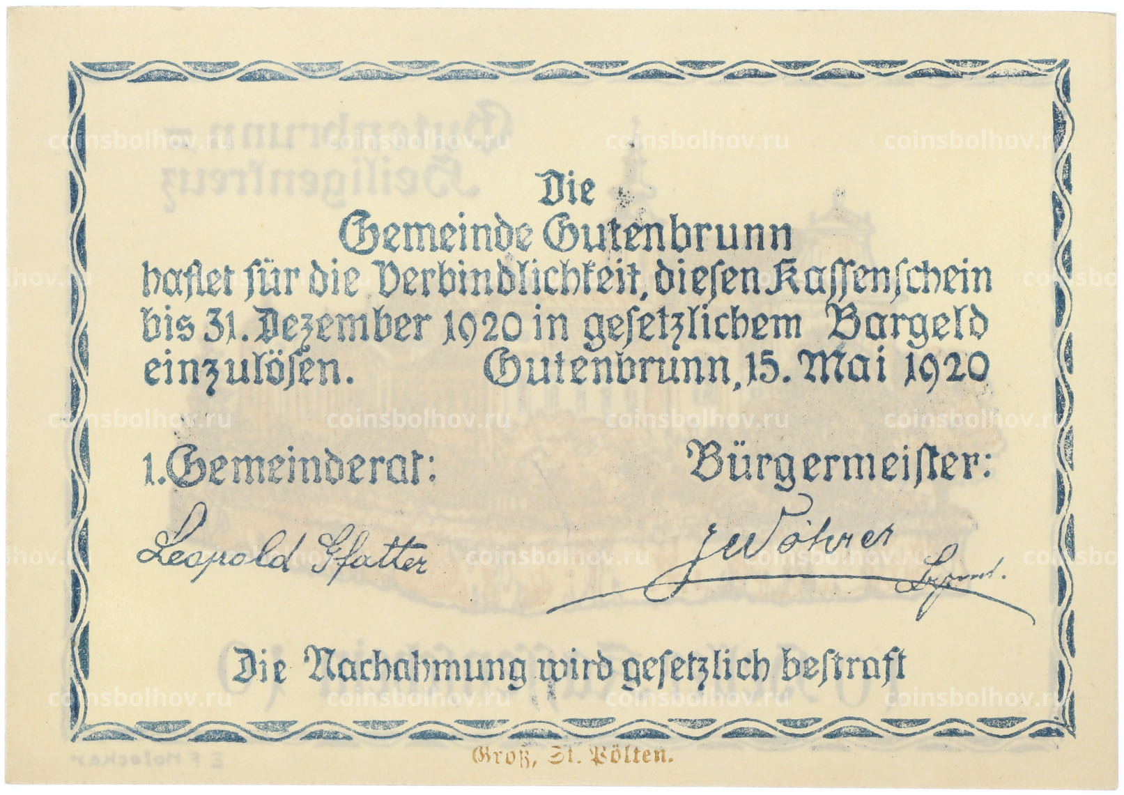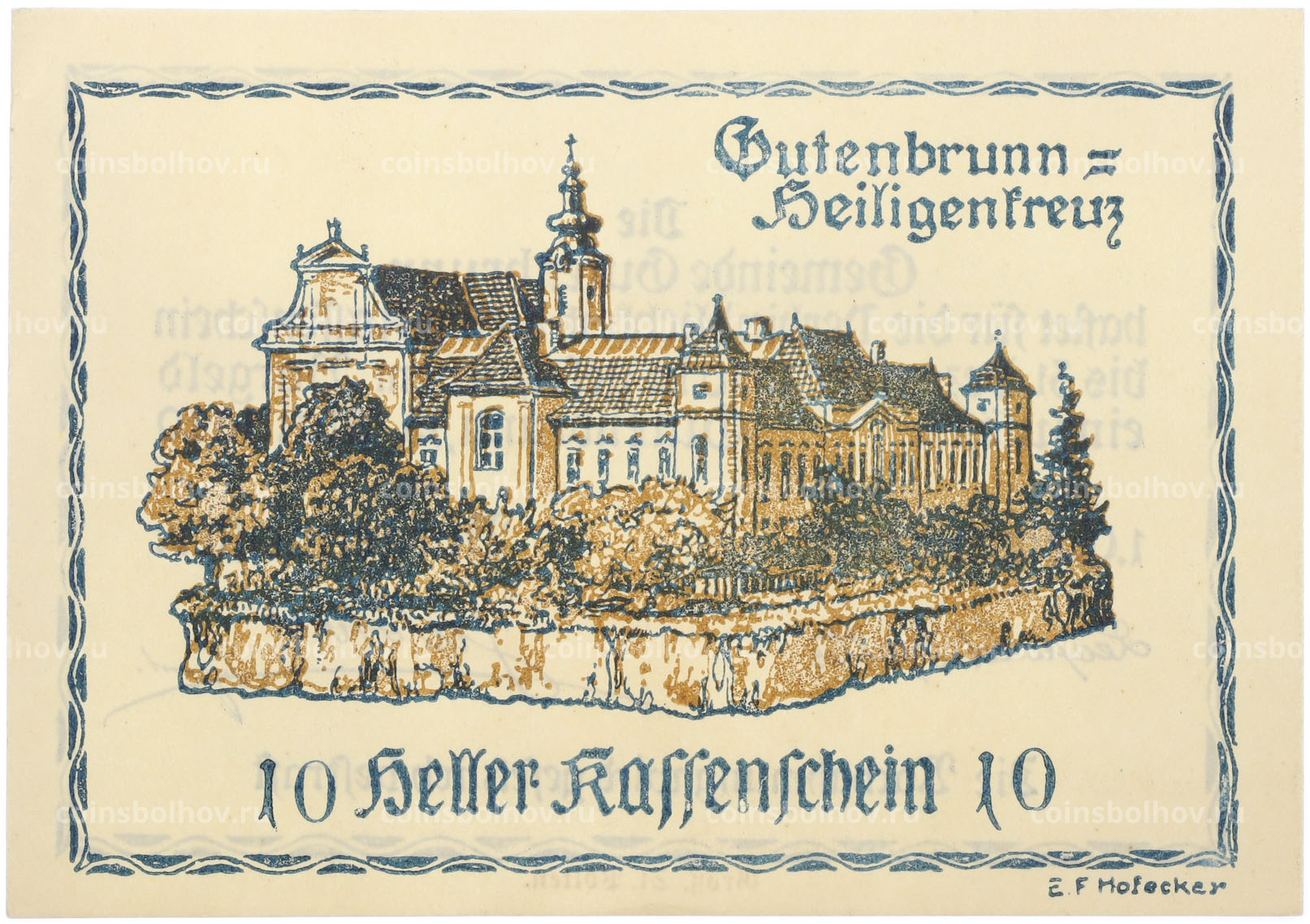 Банкнота 10 геллеров 1921 года Австрия — община Гутенбрунн (Нотгельд)