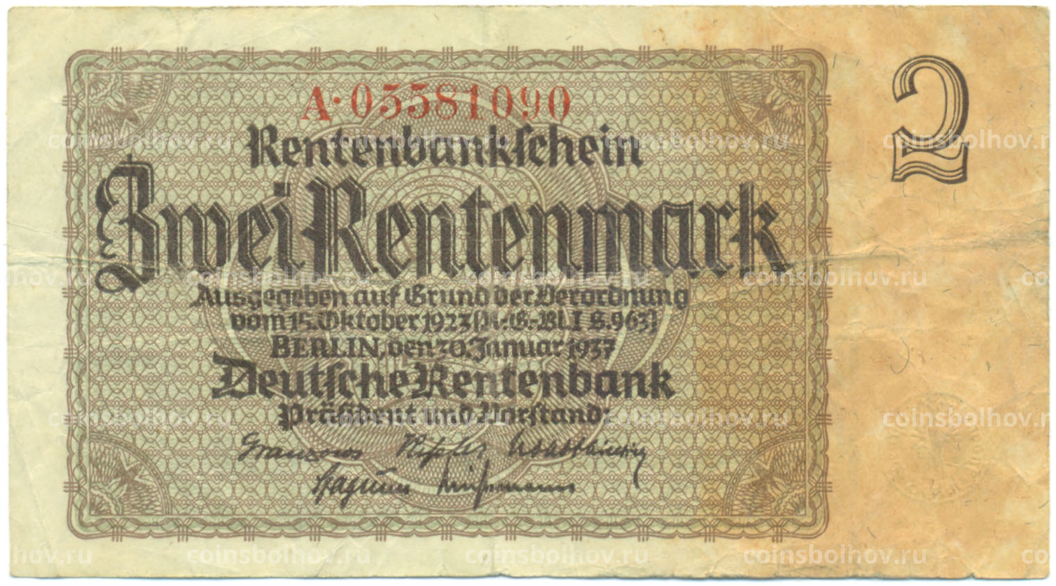 Банкнота 2 рентенмарки 1937 года Германия