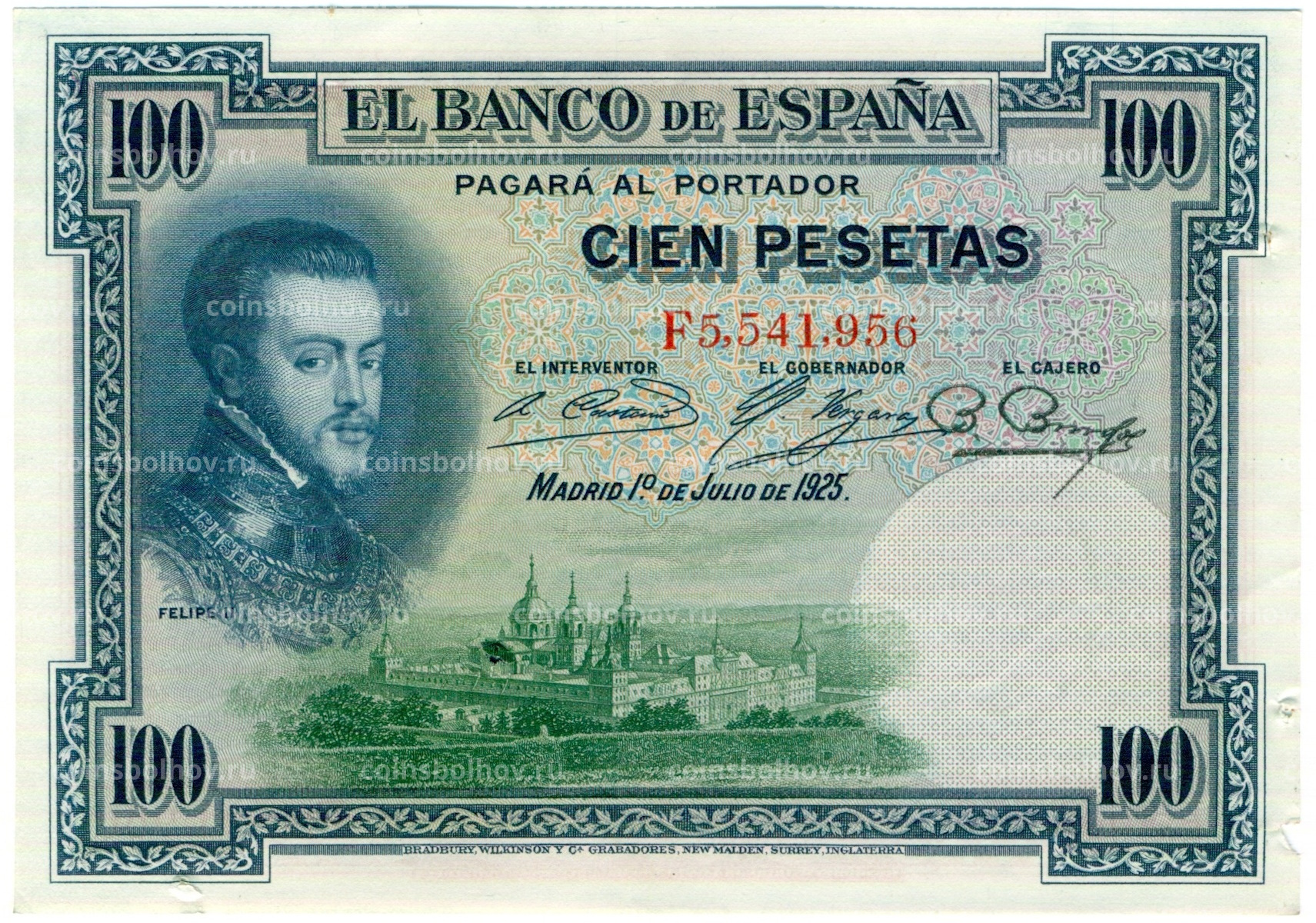100 песет 1925 года Испания (Гашение)