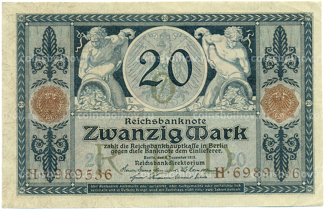 Банкнота 20 марок 1915 года Германия