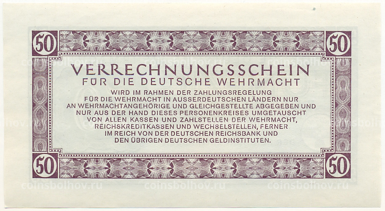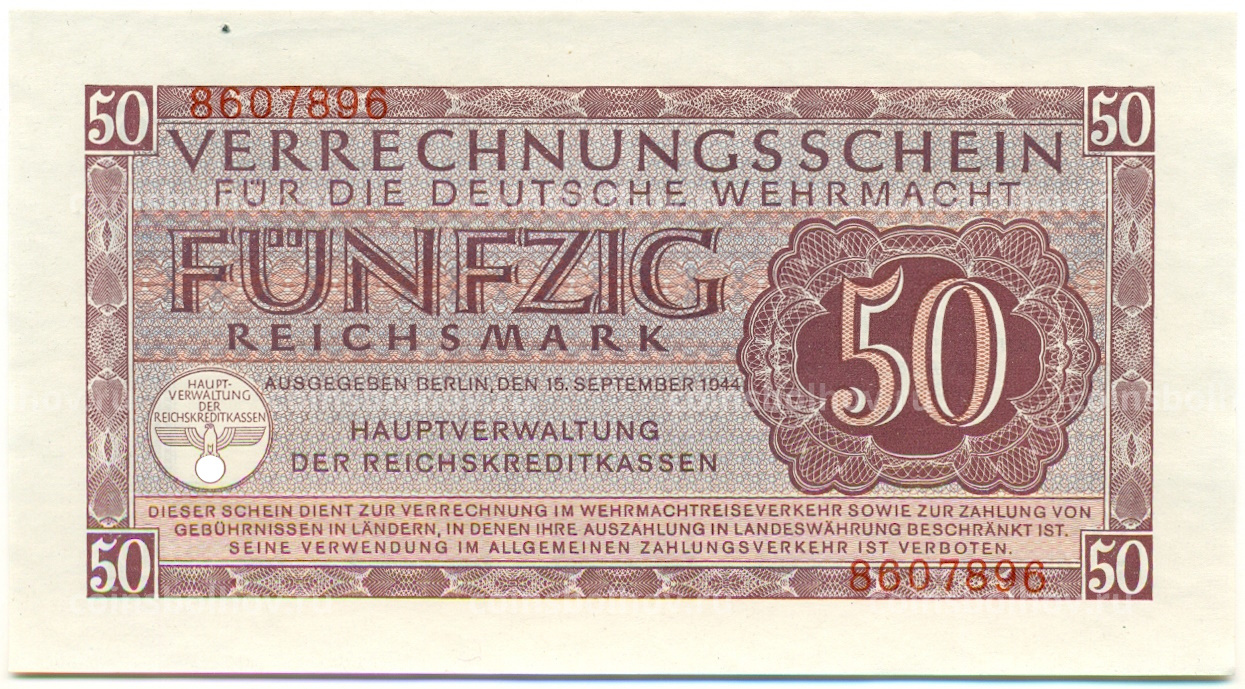 Банкнота 50 рейхсмарок 1944 года Германия (Вооруженные силы Германии)