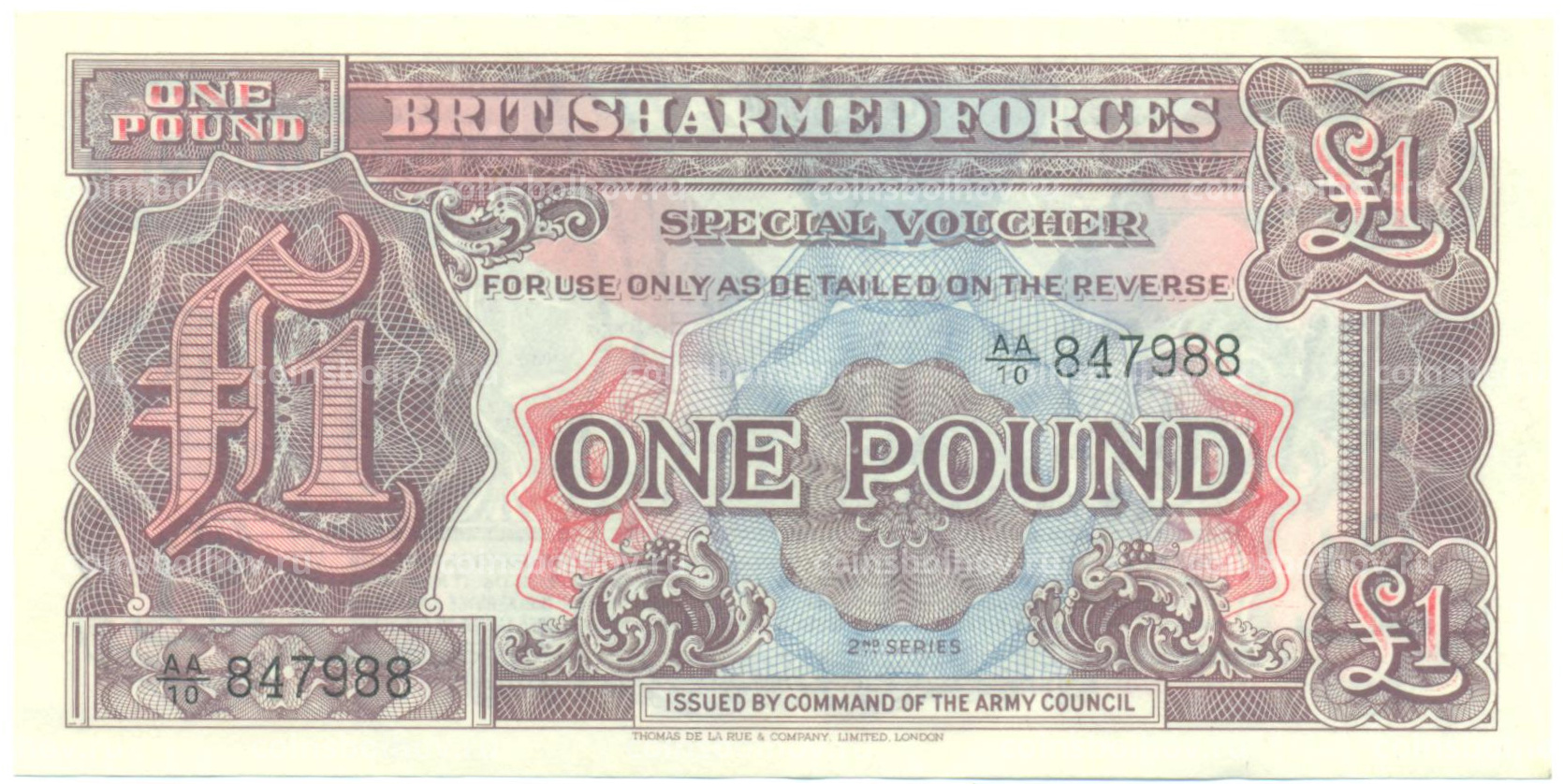 Банкнота 1 фунт 1948 года Ваучер Британских вооруженных сил (2-я серия)
