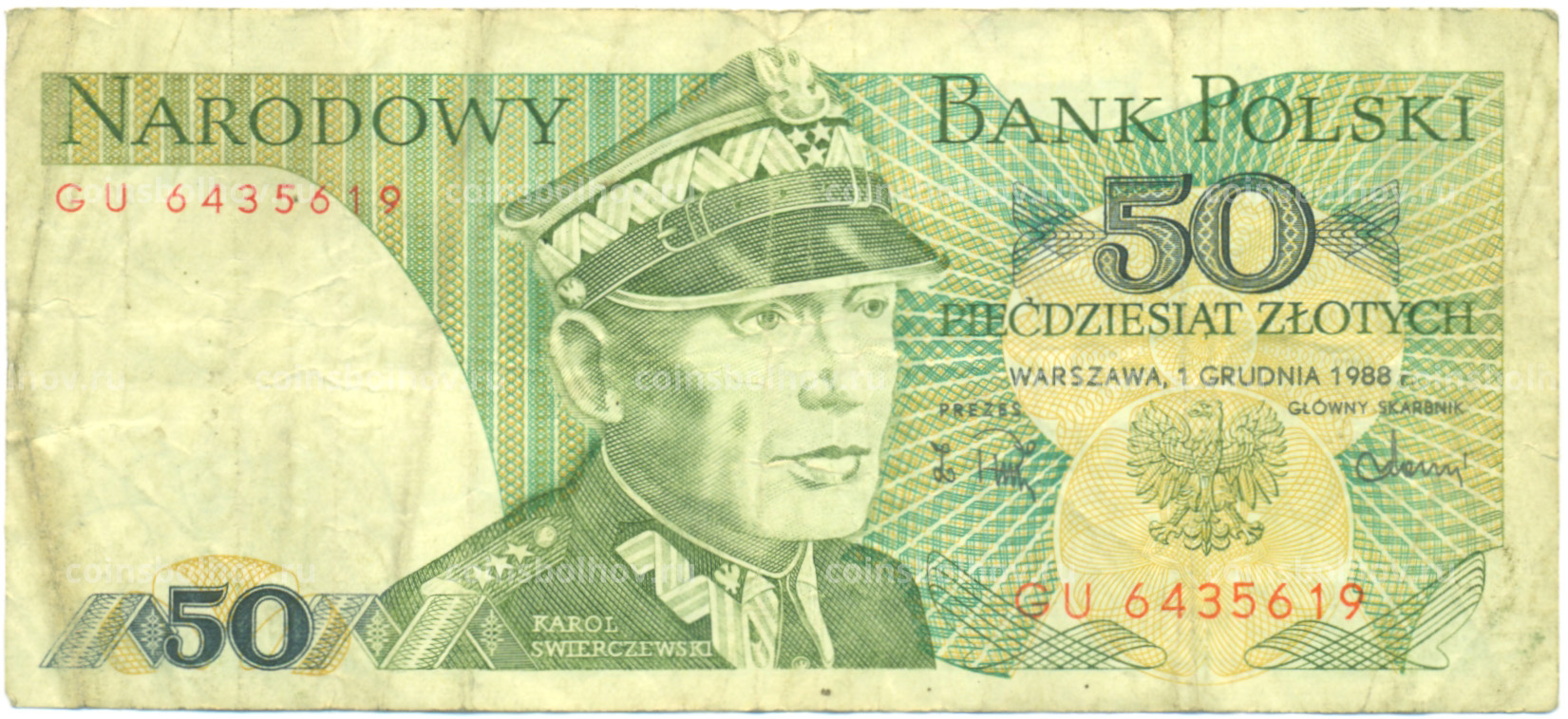 Банкнота 50 злотых 1988 года Польша